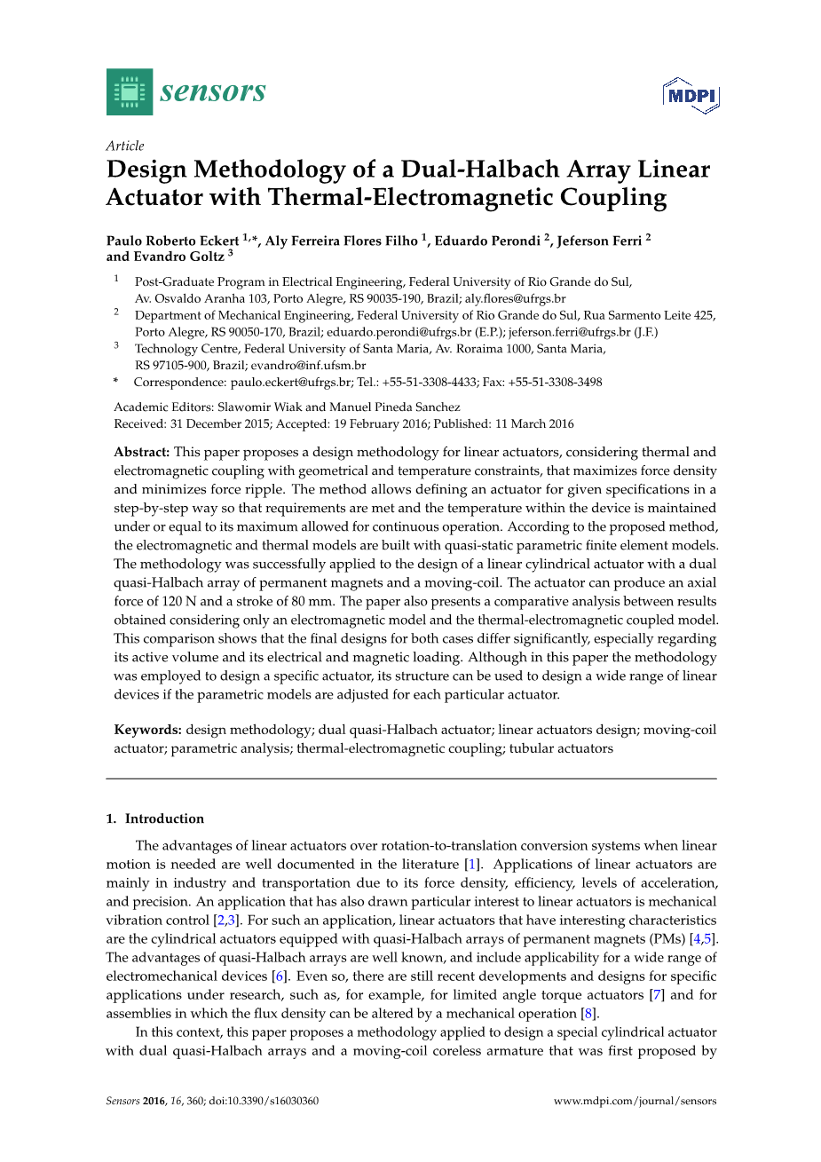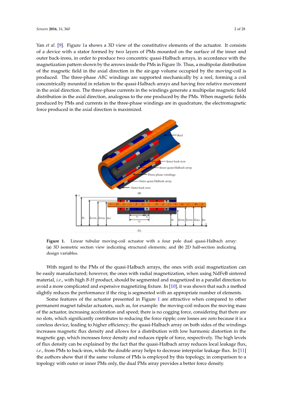 线性致动器的过旋转到翻译转换系统时的线性的优点运动在文献中有详细的记载[[1]]。线性执行器的应用是主要集中在工业和交通方面,由于其力密度,效率,加速度水平,和精确度。 对线性执行器也特别感兴趣的应用是机械式的振动控制。[[2]][[3]]对于这样的应用,具有有趣特性的线性致动器是配备有准Halbach永磁体阵列(PM)的圆柱形致动器。[[4]][[5]]准Halbach阵列的优点是众所周知的,并且包括广泛的适用范围机电设备。[[6]]即便如此,仍然有最新的发展和具体的设计正在研究的应用,例如有限角度扭矩致动器[[7]]和其中通量密度可以通过机械操作而改变的组件。