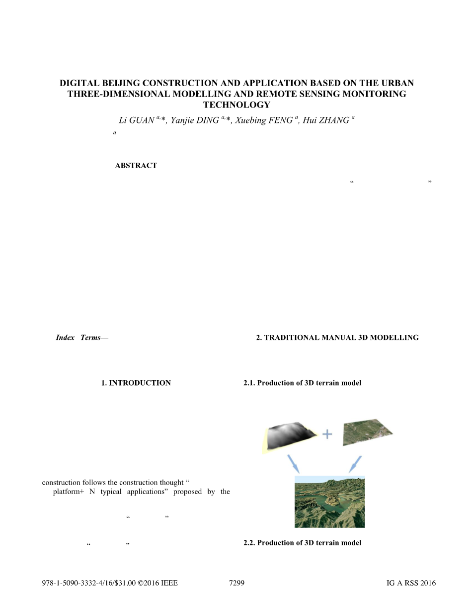 Li GUAN a,*, Yanjie DING a,*, Xuebing FENG a, Hui ZHANG a北京测绘学院城市空间信息工程重点实验室,北京100038