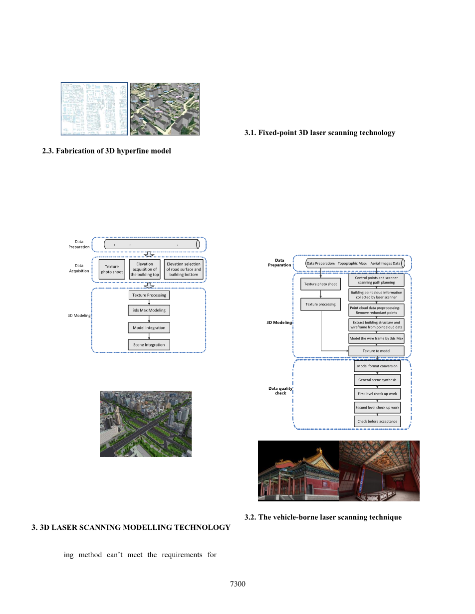定点三维激光扫描利用了激光测距的原理。通过记录被测物体表面的大量稠密点的三维坐标、反射率和纹理信息,可以快速重建被测目标的三维模型和线、面、体、各种地图数据。三维激光扫描系统能够获取目标物体的大量数据点,因此与传统的单点测量相比,三维激光扫描技术也被认为是单点测量向表面测量发展过程中的革命性突破。北京市利用该技术,建立了故宫的禁食宫的三维模型,取得了良好的效果。