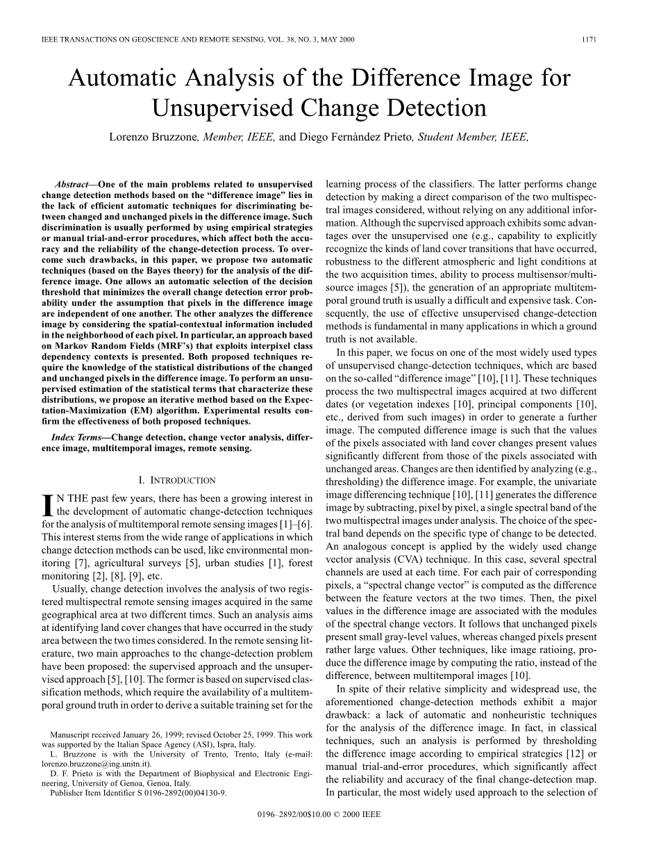 IEEE成员Lorenzo Bruzzone和IEEE学生会员DiegoFernagrave;ndezPrieto
