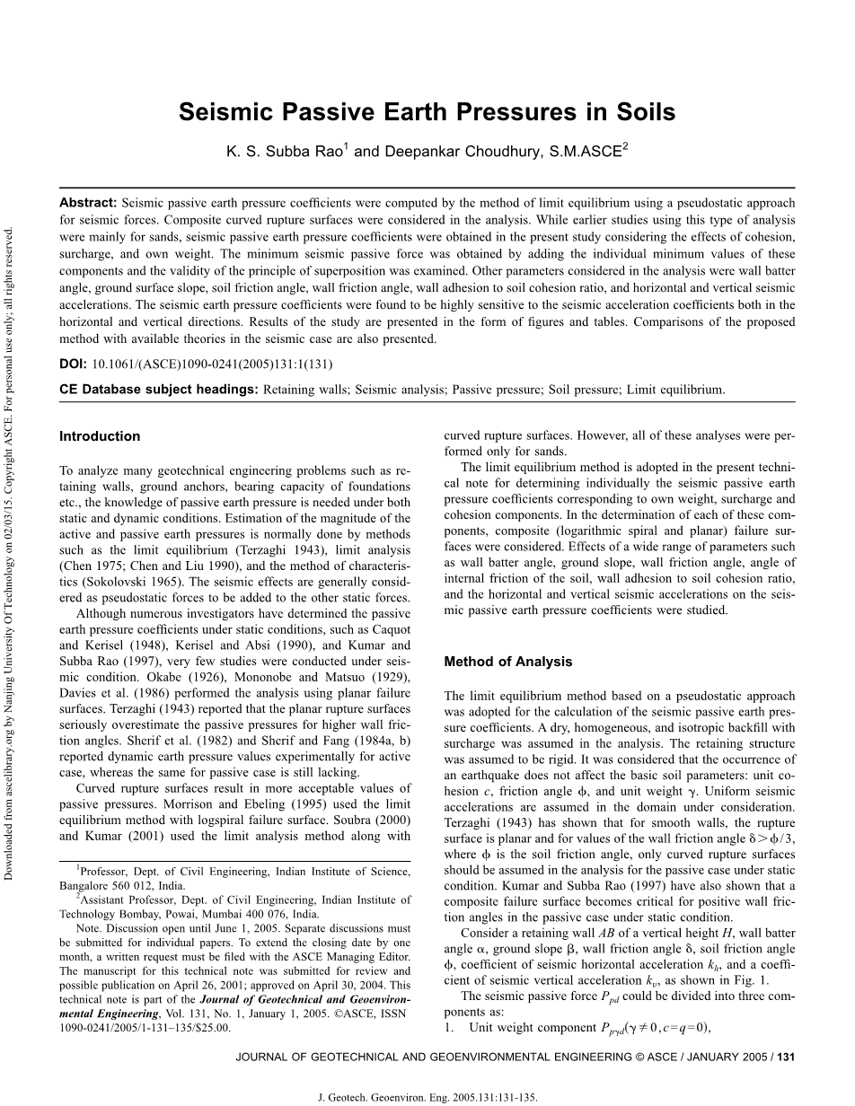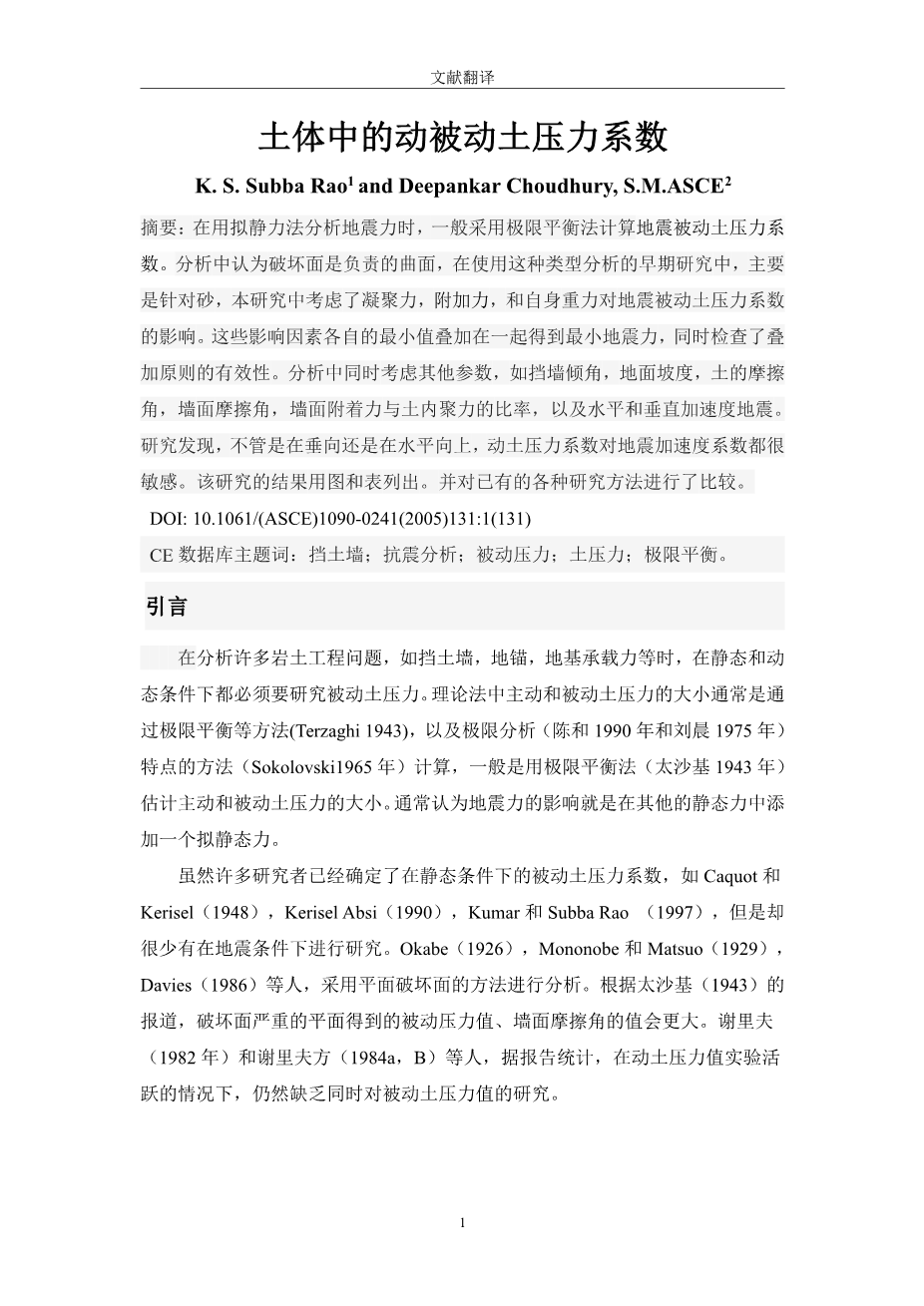 土体中的动被动土压力系数外文翻译资料 2023-01-13 11:29:26 英语原文共 5 页,剩余内容已隐藏,支付完成后下载完整资料 英语原文共 20 页,剩余内容已隐藏,支付完成后下载完整资料 资料编号:[104530],资料为PDF文档或Word文档,PDF文档可免费转换为Word 您需要先支付 30元 才能查看全部内容!立即支付 发小红书推广免费获取该资料资格。点击链接进入获取推广文案即可: Ai一键组稿 | 降AI率 | 降重复率 | 论文一键排版 PREVIOUS NEXT 您可能感兴趣的文章 岩土工程,能源与气候变化:第56届排名讲座外文翻译资料 现场研究循环载荷的影响外文翻译资料 岩土工程、能源和气候变化:第56次兰肯讲座外文翻译资料 关于171个未能通过的土工合成加固机 械稳定土墙的数据库、统计数据和建议外文翻译资料 随机水文地质的最大难点分析与盲点外文翻译资料 利用截断高阶有限差分法的数值模拟波动方程外文翻译资料 裂缝疏通:流体饱和破裂岩石中地震引起粘性剪切应 力的数值研究外文翻译资料 在大量节理岩体中的边坡稳定问题和反分析: 以土耳其马尼萨案例为例外文翻译资料 临界状态下的被动土压力外文翻译资料 土体中的动被动土压力系数外文翻译资料