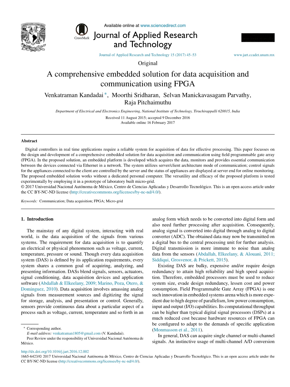 摘要:实时应用中的数字控制器需要可靠的系统来获取数据以进行有效处理。本文重点介绍使用现场可编程门阵列(FPGA)设计和开发用于数据采集和通信的综合嵌入式解决方案。在所提出的解决方案中,开发了一种嵌入式平台,其不仅能够监视并获取数据,还可以提供通过网络中的以太网进行连接的设备之间的基本通信。该系统利用服务器/客户端架构的通信模式;连接到客户端的设备的控制信号由服务器控制,并且在服务器端显示设备的状态以进行在线监视。在没有个人电脑的情况下,可以通过在实验室建立的微电网原型测试它的多功能性以及工作效益。