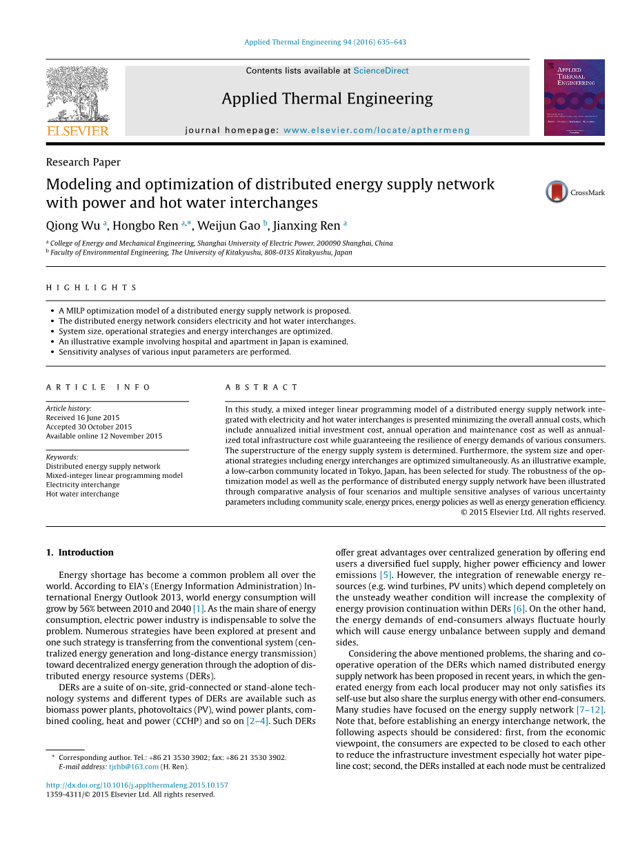 译文标题 分布式供电网络的建设与优化及其电力和热水交换