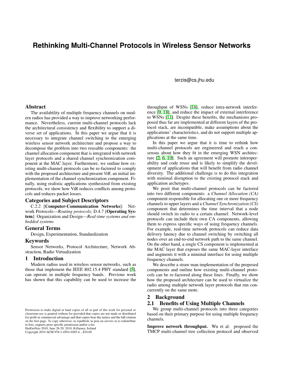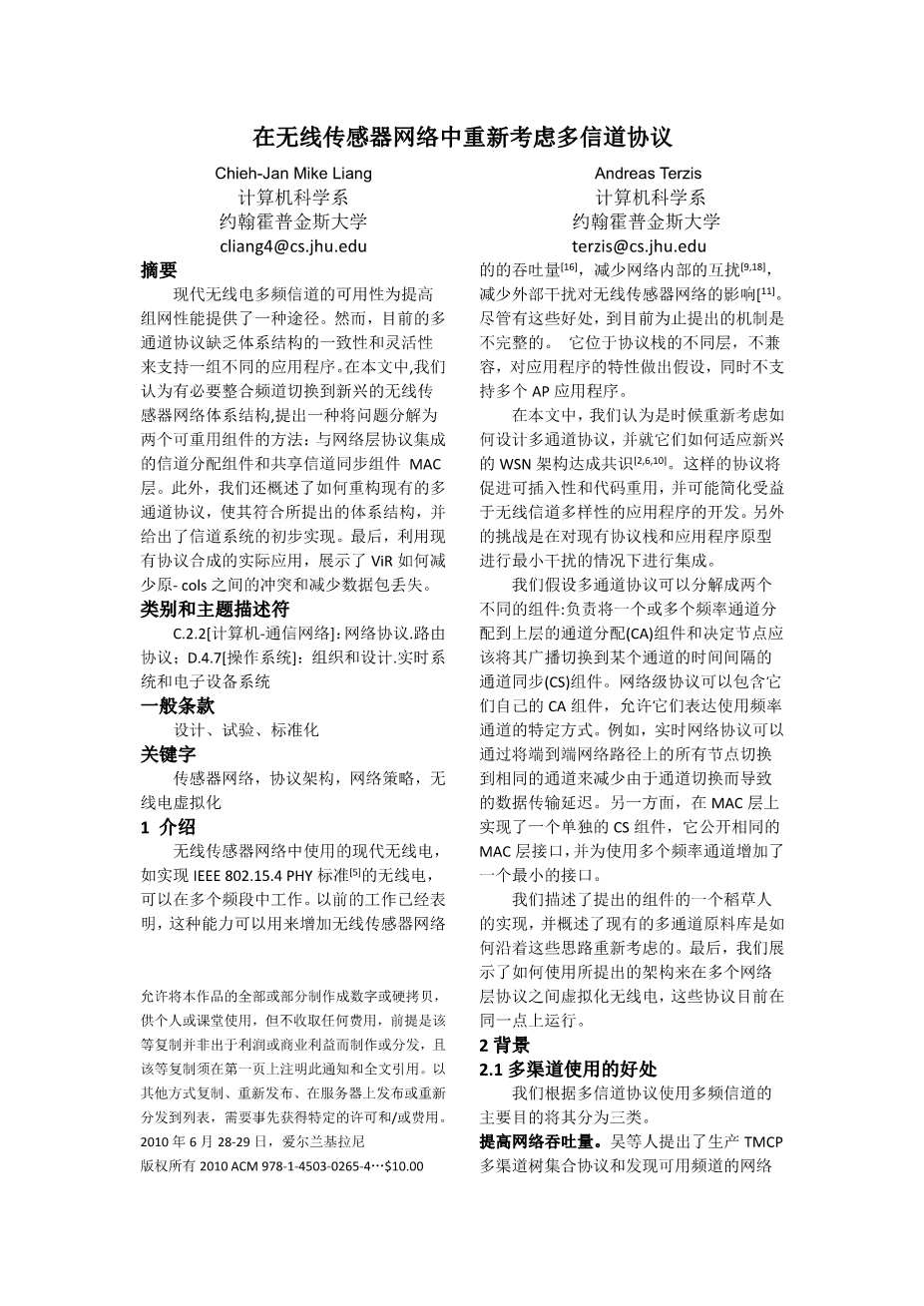在无线传感器网络中重新考虑多信道协议外文翻译资料 2023-02-10 09:36:55 英语原文共 5 页,剩余内容已隐藏,支付完成后下载完整资料 英语译文共 6 页,剩余内容已隐藏,支付完成后下载完整资料 资料编号:[445393],资料为PDF文档或Word文档,PDF文档可免费转换为Word 您需要先支付 30元 才能查看全部内容!立即支付 发小红书推广免费获取该资料资格。点击链接进入获取推广文案即可: Ai一键组稿 | 降AI率 | 降重复率 | 论文一键排版 PREVIOUS NEXT 您可能感兴趣的文章 基于Matlab的无刷双馈电机建模与仿真文献综述 基于51单片机的温控风扇设计文献综述 调光参数集中控制的智慧型室内LED照明系统设计开题报告 小区车辆防逆行警告系统设计开题报告 基于Matlab/Simulink变桨距控制系统的仿真研究开题报告 电力系统暂态稳定的MATLAB/Simulink仿真开题报告 同步磁阻电机设计与性能分析文献综述 基于Matlab/Simulink的永磁同步电机控制系统仿真开题报告 基于SVM的图像无参考质量评价算法的研究开题报告 自动浇花系统的开发与设计开题报告