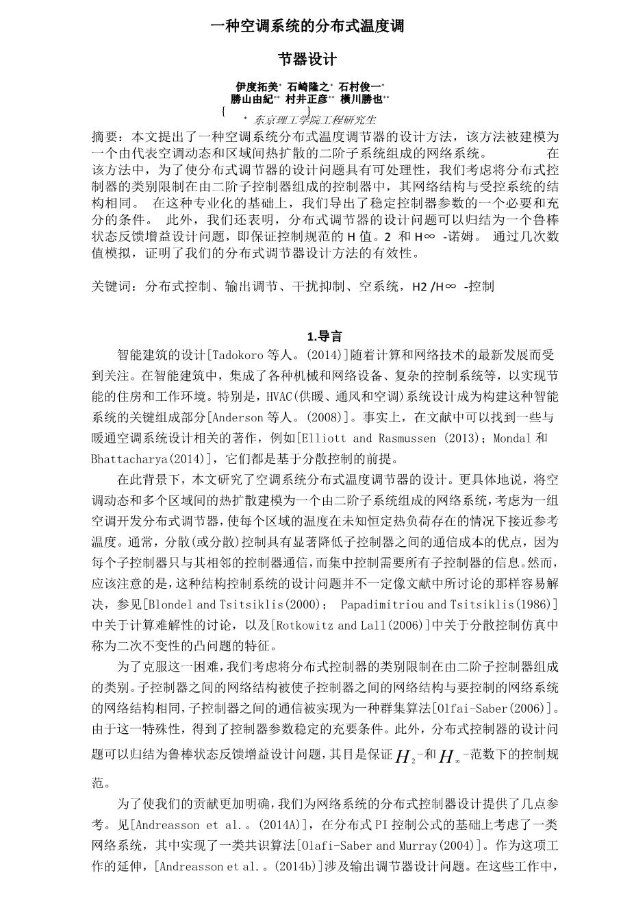 一种空调系统的分布式温度调节器设计外文翻译资料 2023-02-28 23:12:36 英语原文共 6 页,剩余内容已隐藏,支付完成后下载完整资料 英语译文共 13 页,剩余内容已隐藏,支付完成后下载完整资料 资料编号:[410254],资料为PDF文档或Word文档,PDF文档可免费转换为Word 您需要先支付 30元 才能查看全部内容!立即支付 发小红书推广免费获取该资料资格。点击链接进入获取推广文案即可: Ai一键组稿 | 降AI率 | 降重复率 | 论文一键排版 PREVIOUS NEXT 您可能感兴趣的文章 基于Matlab的无刷双馈电机建模与仿真文献综述 基于51单片机的温控风扇设计文献综述 调光参数集中控制的智慧型室内LED照明系统设计开题报告 小区车辆防逆行警告系统设计开题报告 基于Matlab/Simulink变桨距控制系统的仿真研究开题报告 电力系统暂态稳定的MATLAB/Simulink仿真开题报告 同步磁阻电机设计与性能分析文献综述 基于Matlab/Simulink的永磁同步电机控制系统仿真开题报告 基于SVM的图像无参考质量评价算法的研究开题报告 自动浇花系统的开发与设计开题报告