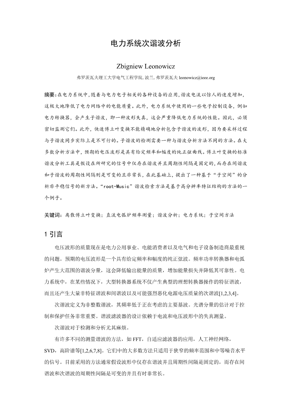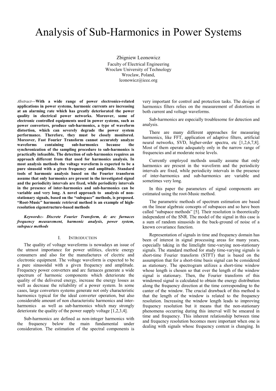 电力系统次谐波分析外文翻译资料