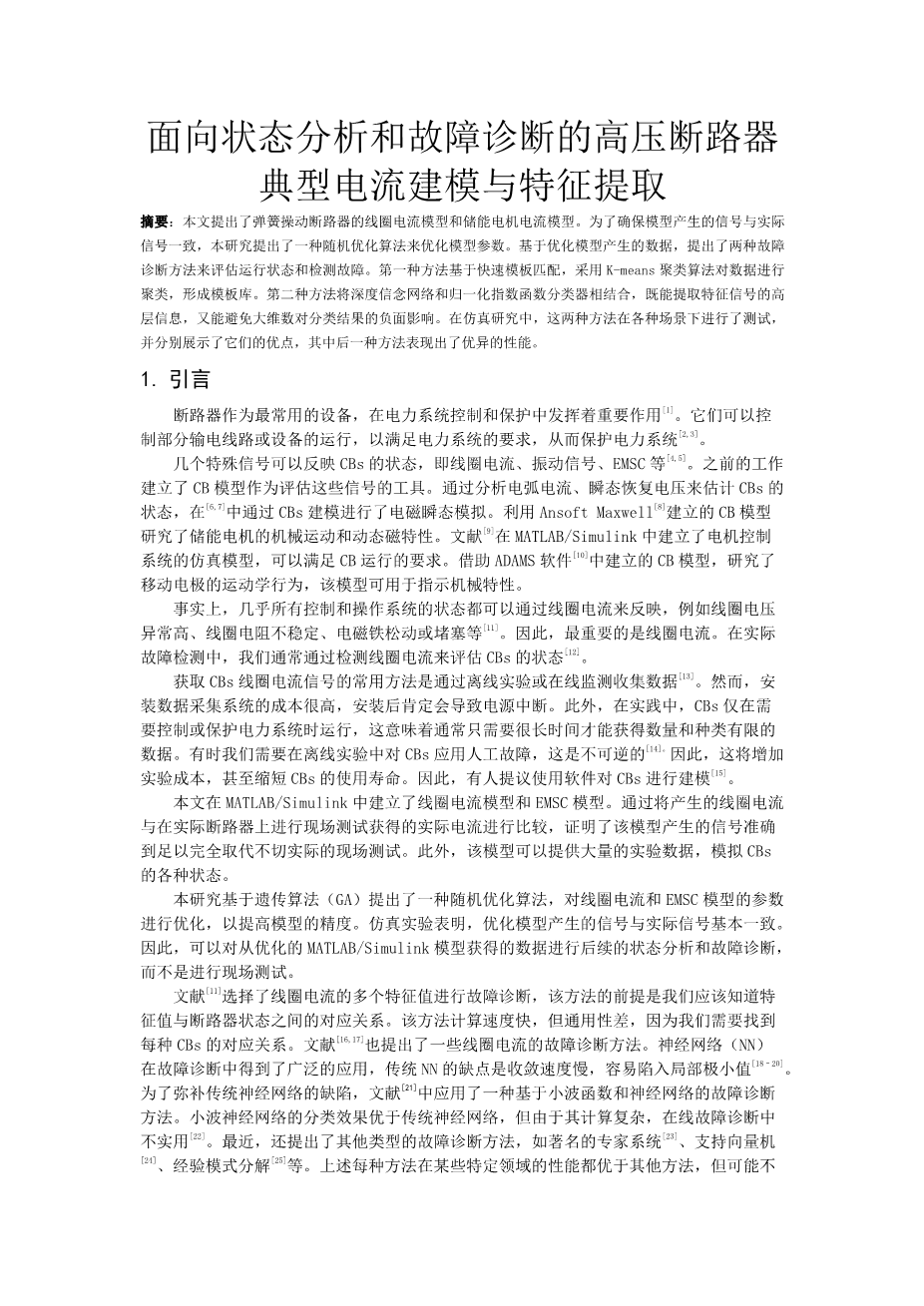 面向状态分析和故障诊断的高压断路器典型电流建模与特征提取外文翻译资料 2023-07-19 16:49:43 英语原文共 7 页,剩余内容已隐藏,支付完成后下载完整资料 英语译文共 12 页,剩余内容已隐藏,支付完成后下载完整资料 资料编号:[604109],资料为PDF文档或Word文档,PDF文档可免费转换为Word 您需要先支付 30元 才能查看全部内容!立即支付 发小红书推广免费获取该资料资格。点击链接进入获取推广文案即可: Ai一键组稿 | 降AI率 | 降重复率 | 论文一键排版 PREVIOUS NEXT 您可能感兴趣的文章 基于Matlab的无刷双馈电机建模与仿真文献综述 基于51单片机的温控风扇设计文献综述 调光参数集中控制的智慧型室内LED照明系统设计开题报告 小区车辆防逆行警告系统设计开题报告 基于Matlab/Simulink变桨距控制系统的仿真研究开题报告 电力系统暂态稳定的MATLAB/Simulink仿真开题报告 同步磁阻电机设计与性能分析文献综述 基于Matlab/Simulink的永磁同步电机控制系统仿真开题报告 基于SVM的图像无参考质量评价算法的研究开题报告 自动浇花系统的开发与设计开题报告
