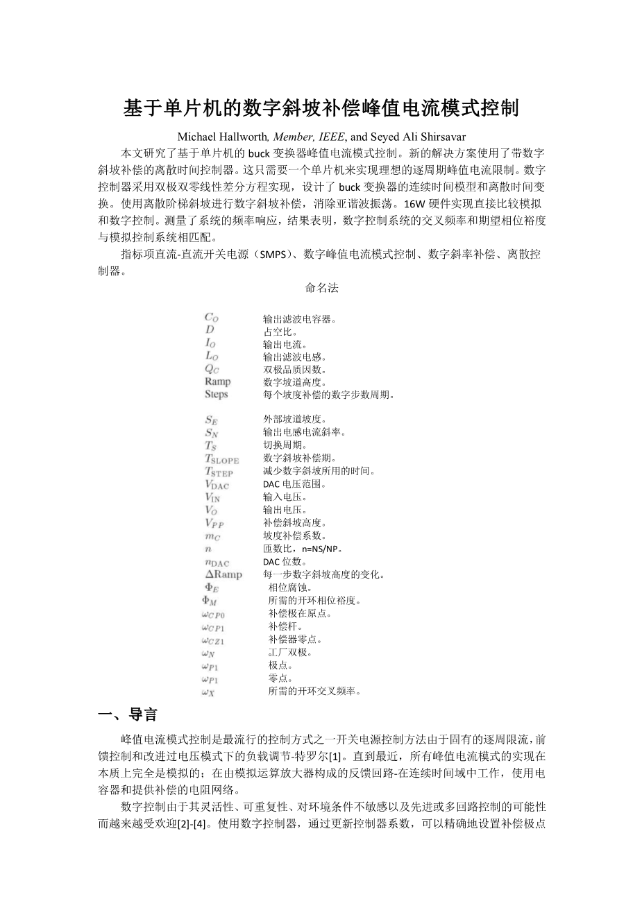 基于单片机的数字斜坡补偿峰值电流模式控制外文翻译资料 2023-08-07 10:36:50 英语原文共 12 页,剩余内容已隐藏,支付完成后下载完整资料 英语译文共 16 页,剩余内容已隐藏,支付完成后下载完整资料 资料编号:[607142],资料为PDF文档或Word文档,PDF文档可免费转换为Word 您需要先支付 30元 才能查看全部内容!立即支付 发小红书推广免费获取该资料资格。点击链接进入获取推广文案即可: Ai一键组稿 | 降AI率 | 降重复率 | 论文一键排版 PREVIOUS NEXT 您可能感兴趣的文章 基于Matlab的无刷双馈电机建模与仿真文献综述 基于51单片机的温控风扇设计文献综述 调光参数集中控制的智慧型室内LED照明系统设计开题报告 小区车辆防逆行警告系统设计开题报告 基于Matlab/Simulink变桨距控制系统的仿真研究开题报告 电力系统暂态稳定的MATLAB/Simulink仿真开题报告 同步磁阻电机设计与性能分析文献综述 基于Matlab/Simulink的永磁同步电机控制系统仿真开题报告 基于SVM的图像无参考质量评价算法的研究开题报告 自动浇花系统的开发与设计开题报告