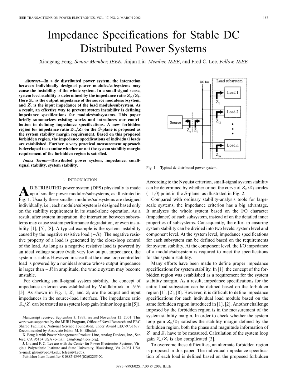 然而,在许多直流分布式电源系统, 在所有频率范围要求||||是不切实际的,因为这将要求设计非常保守和昂贵[1],[4].