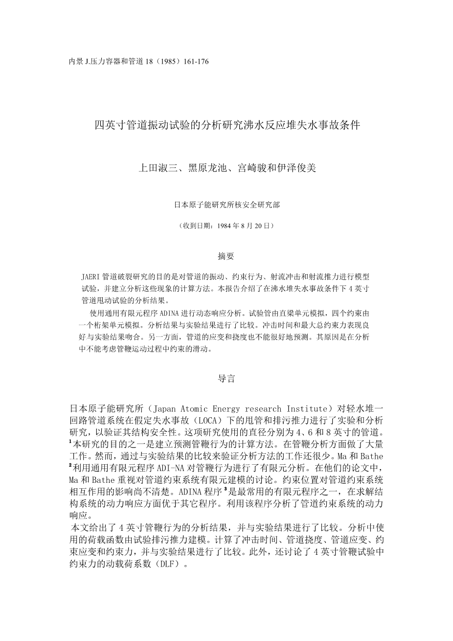 四英寸管道振动试验的分析研究沸水反应堆失水事故条件外文翻译资料 2023-02-07 09:13:04 英语原文共 16 页,剩余内容已隐藏,支付完成后下载完整资料 英语译文共 14 页,剩余内容已隐藏,支付完成后下载完整资料 资料编号:[245521],资料为PDF文档或Word文档,PDF文档可免费转换为Word 您需要先支付 30元 才能查看全部内容!立即支付 发小红书推广免费获取该资料资格。点击链接进入获取推广文案即可: Ai一键组稿 | 降AI率 | 降重复率 | 论文一键排版 PREVIOUS NEXT 您可能感兴趣的文章 立式复合材料贮罐的新国标设计及有限元校核文献综述 雅居花园住宅楼建筑结构设计文献综述 纳米通道内的平面Couette流动性质研究文献综述 大学生宿舍建筑结构设计(结构方案:钢结构)开题报告 水域天际三期4号楼建筑结构设计开题报告 石墨烯-聚合物基纳米复合材料的等效热传导性能分析开题报告 船用余热温差发电系统数值模拟研究开题报告 苏州市姑苏区如家快捷酒店设计外文翻译资料 钢围混凝土夹层板的平面行为框架:一种数值分析的方法外文翻译资料 Herglotz型时滞Birkhoff系统的Noether定理外文翻译资料
