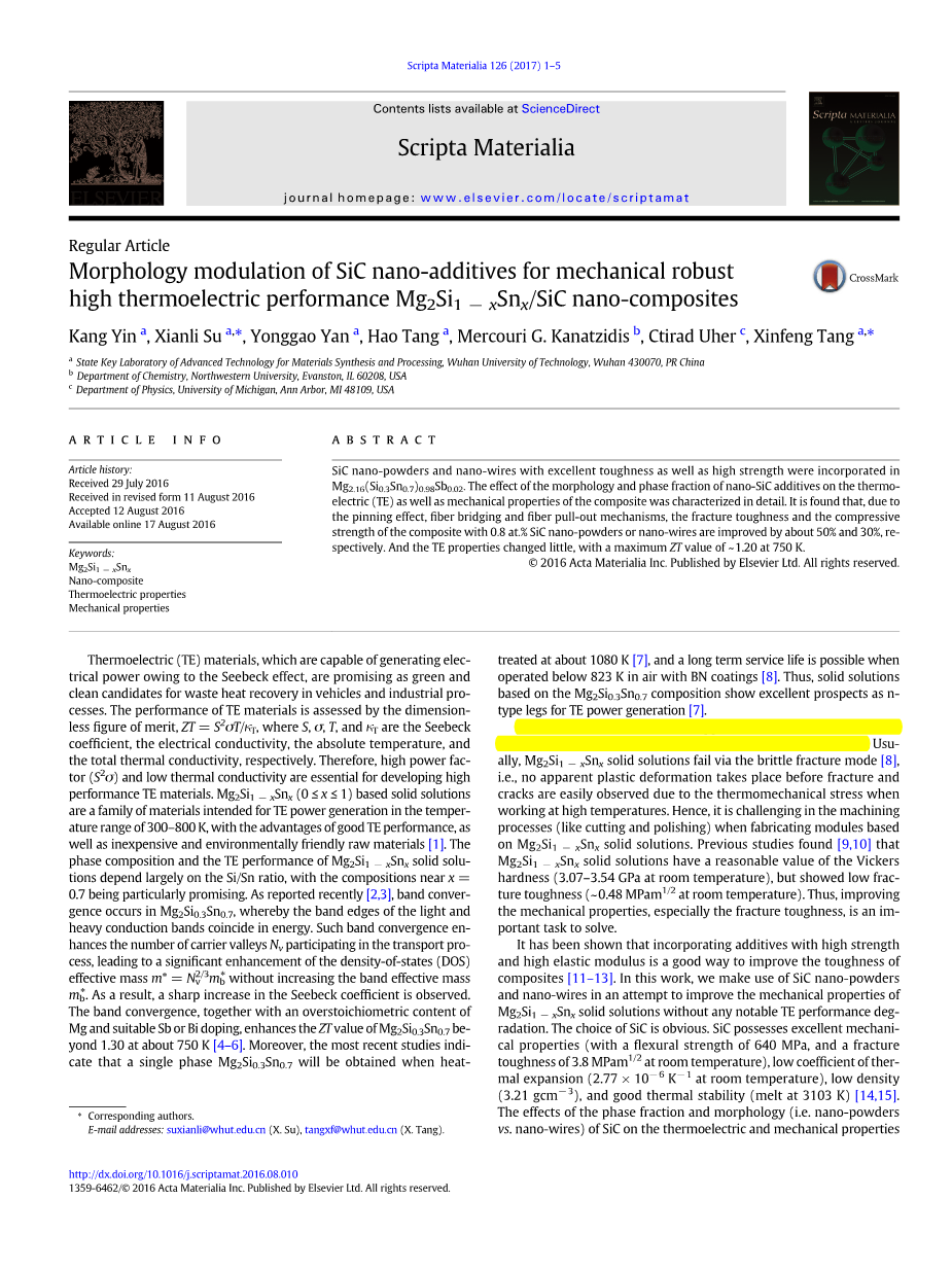 用于力学性能稳定和高热电性能的Mg2Si1-xSnx/SiC纳米复合材料的SiC纳米添加剂的形态调制