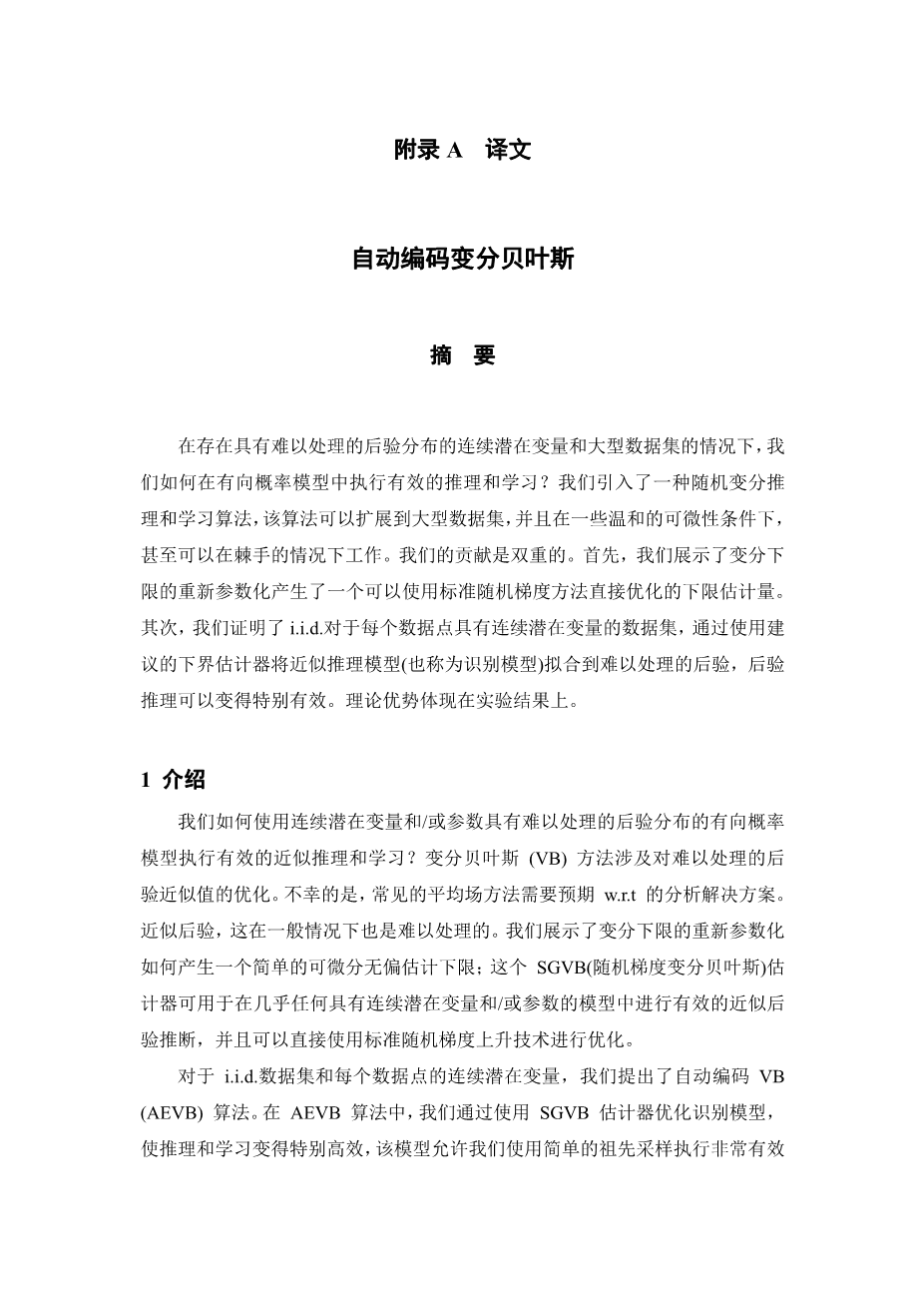 自动编码变分贝叶斯外文翻译资料 2023-05-16 15:10:33 英语原文共 14 页,剩余内容已隐藏,支付完成后下载完整资料 英语译文共 26 页,剩余内容已隐藏,支付完成后下载完整资料 资料编号:[591397],资料为PDF文档或Word文档,PDF文档可免费转换为Word 您需要先支付 30元 才能查看全部内容!立即支付 发小红书推广免费获取该资料资格。点击链接进入获取推广文案即可: Ai一键组稿 | 降AI率 | 降重复率 | 论文一键排版 PREVIOUS NEXT 您可能感兴趣的文章 传感器网络中高斯混合的分布式变分贝叶斯算法外文翻译资料 从杂乱场景中进行跟多人踪的在线变分贝叶斯模型外文翻译资料 自动编码变分贝叶斯外文翻译资料 用一组指标来评估日光连接控制系统的实际性能外文翻译资料 智能照明:未来之路?回顾过去,塑造未来外文翻译资料 工业物联网的分布式系统视角外文翻译资料 物联网中的区块链:挑战和解决方案外文翻译资料 室内空调在供暖季节的热舒适性研究外文翻译资料 住宅智能电网智能负荷调度的分布式深度强化学习外文翻译资料 iBuilding:智能建筑中的人工智能外文翻译资料