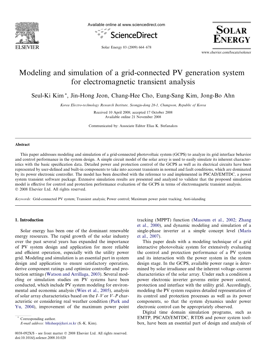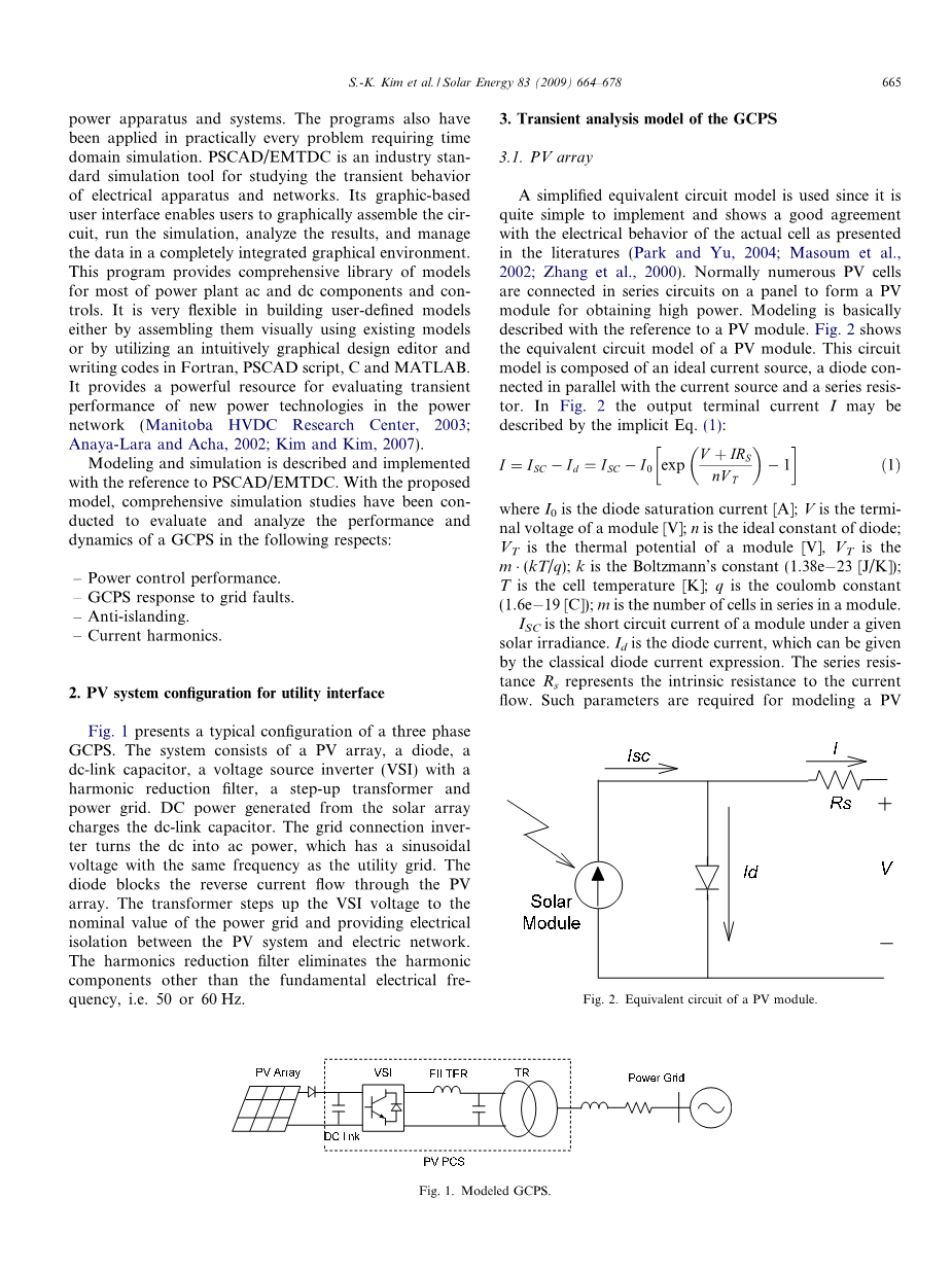 太阳能是主要的可再生能源之一。在过去几年里, 太阳能产业高速发展,并扩展到光伏系统的设计和应用更可靠高效的运行,特别是有效功率的研究。 建模和仿真是系统设计中必不可少的部分并且可以确保应用运行良好,导出组件额定值并优化控制器和保护设置(Watson and Arrillaga, 2003)。有的太阳能光伏系统仿真建模已经完成,例如:有关环境和经济分析的太阳能光伏系统建模(Wies et al., 2005)。 基于 I–V 和V–P特性以及实际工况环境分析太阳能阵列特性(Park and Yu, 2004), 最大功率点跟踪(MPPT)功能的改进 (Masoum et al., 2002; Zhang et al., 2000), 和 一个设计简单的单相逆变器动态仿真建模 (Maris et al., 2007)。
