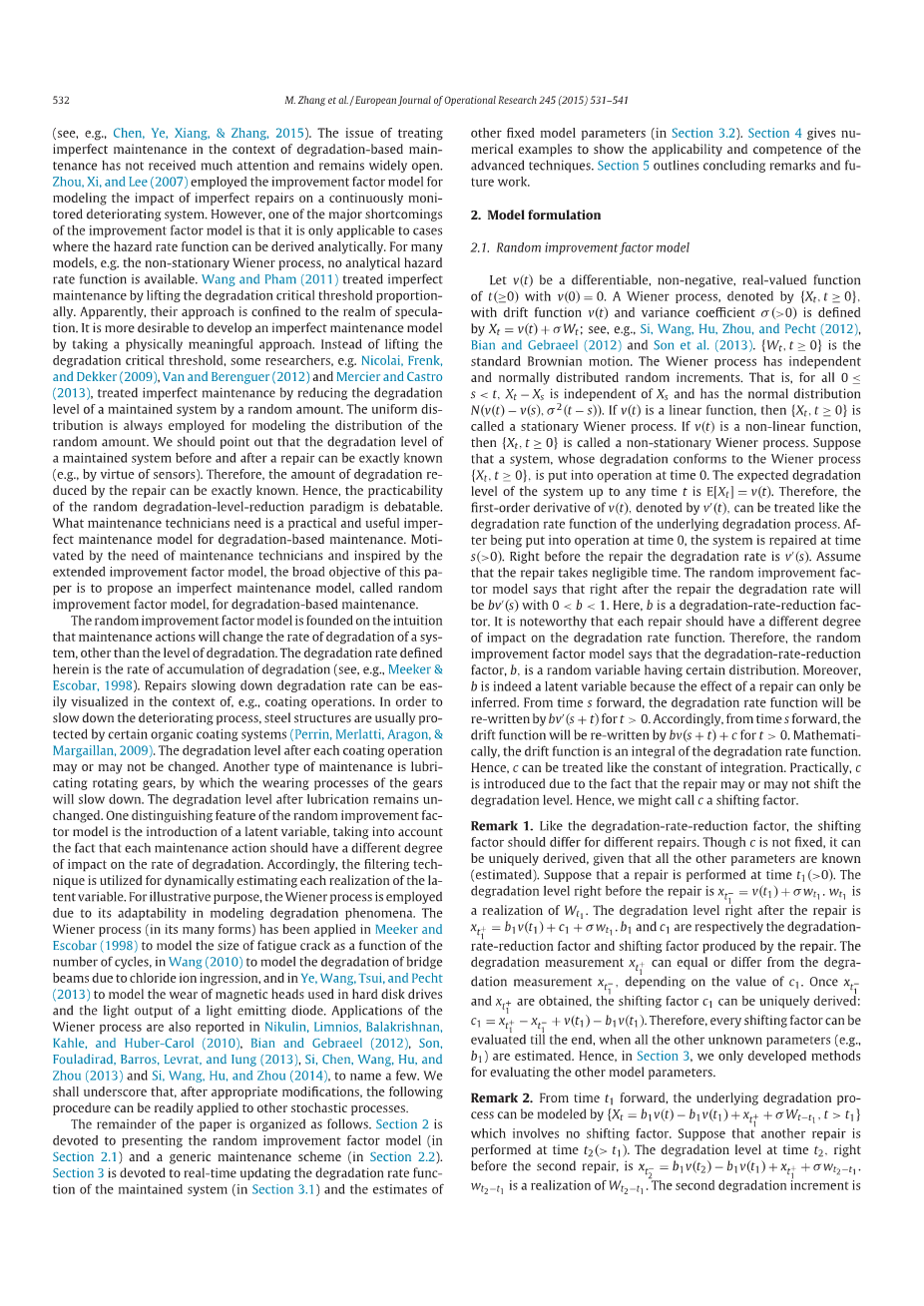 本文的其余部分组织如下。第2节致力于提出随机改进因子模型(第2.1节)和通用维护计划(第2.2节)。第3节致力于实时更新维护系统的退化率函数(第3.1节)和其他固定模型参数的估计(见3.2节)。 第4节给出了数值示例,以显示先进技术的适用性和能力。 第5节概述结论和未来工作。