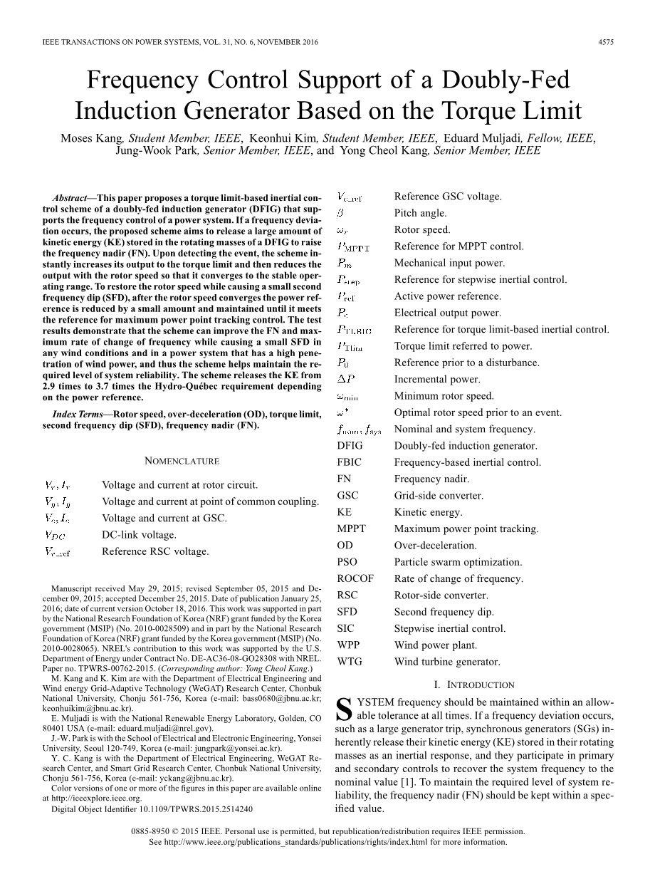Moses Kang,IEEE学生会员;Keonhui Kim,IEEE学生会员;EduardMuljadi,IEEE会士;Jung-WookPark,IEEE高级会员;YongCheol Kang,IEEE高级会员。
