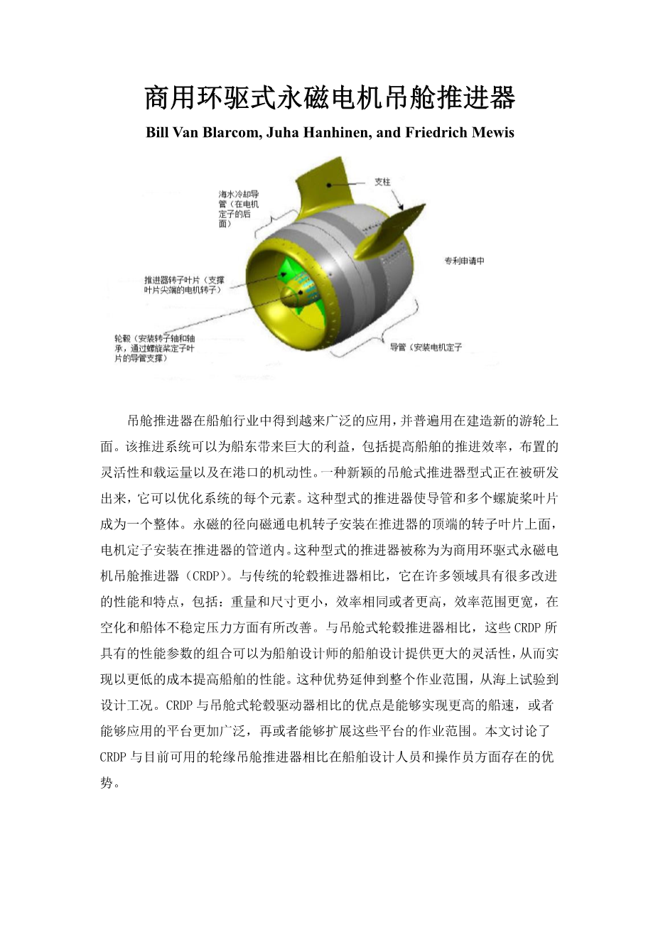 商用环驱式永磁电机吊舱推进器外文翻译资料 2023-02-01 09:04:29 英语原文共 13 页,剩余内容已隐藏,支付完成后下载完整资料 英语原文共 20 页,剩余内容已隐藏,支付完成后下载完整资料 资料编号:[140773],资料为PDF文档或Word文档,PDF文档可免费转换为Word 您需要先支付 30元 才能查看全部内容!立即支付 发小红书推广免费获取该资料资格。点击链接进入获取推广文案即可: Ai一键组稿 | 降AI率 | 降重复率 | 论文一键排版 PREVIOUS NEXT 您可能感兴趣的文章 水下航行器AUV自动控制系统研究文献综述 低NOx燃烧技术应用研究文献综述 基于人体图像识别的客船人流检测技术探讨文献综述 混合电池系统拓扑结构与功率分配策略研究文献综述 二硫化钼含量对材料的摩擦磨损性能影响研究文献综述 基于labview船用电控注油器综合性能测试系统开发文献综述 自动售货机的PLC程序设计开题报告 基于CFD的船体污损阻力影响研究文献综述 某柴油机缸套模态分析与试验研究文献综述 轻烃燃料船舶发动机挥发气回收利用系统研究开题报告