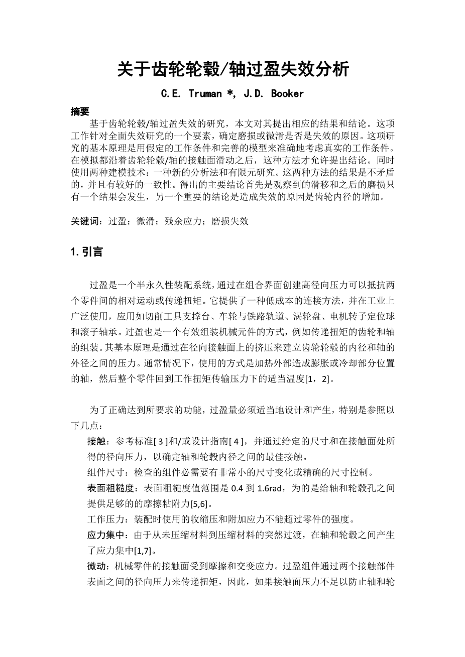 关于齿轮轮毂/轴过盈失效分析外文翻译资料 2023-02-15 10:18:28 英语原文共 16 页,剩余内容已隐藏,支付完成后下载完整资料 英语原文共 18 页,剩余内容已隐藏,支付完成后下载完整资料 资料编号:[139047],资料为PDF文档或Word文档,PDF文档可免费转换为Word 您需要先支付 30元 才能查看全部内容!立即支付 发小红书推广免费获取该资料资格。点击链接进入获取推广文案即可: Ai一键组稿 | 降AI率 | 降重复率 | 论文一键排版 PREVIOUS NEXT 您可能感兴趣的文章 水下航行器AUV自动控制系统研究文献综述 低NOx燃烧技术应用研究文献综述 基于人体图像识别的客船人流检测技术探讨文献综述 混合电池系统拓扑结构与功率分配策略研究文献综述 二硫化钼含量对材料的摩擦磨损性能影响研究文献综述 基于labview船用电控注油器综合性能测试系统开发文献综述 自动售货机的PLC程序设计开题报告 基于CFD的船体污损阻力影响研究文献综述 某柴油机缸套模态分析与试验研究文献综述 轻烃燃料船舶发动机挥发气回收利用系统研究开题报告