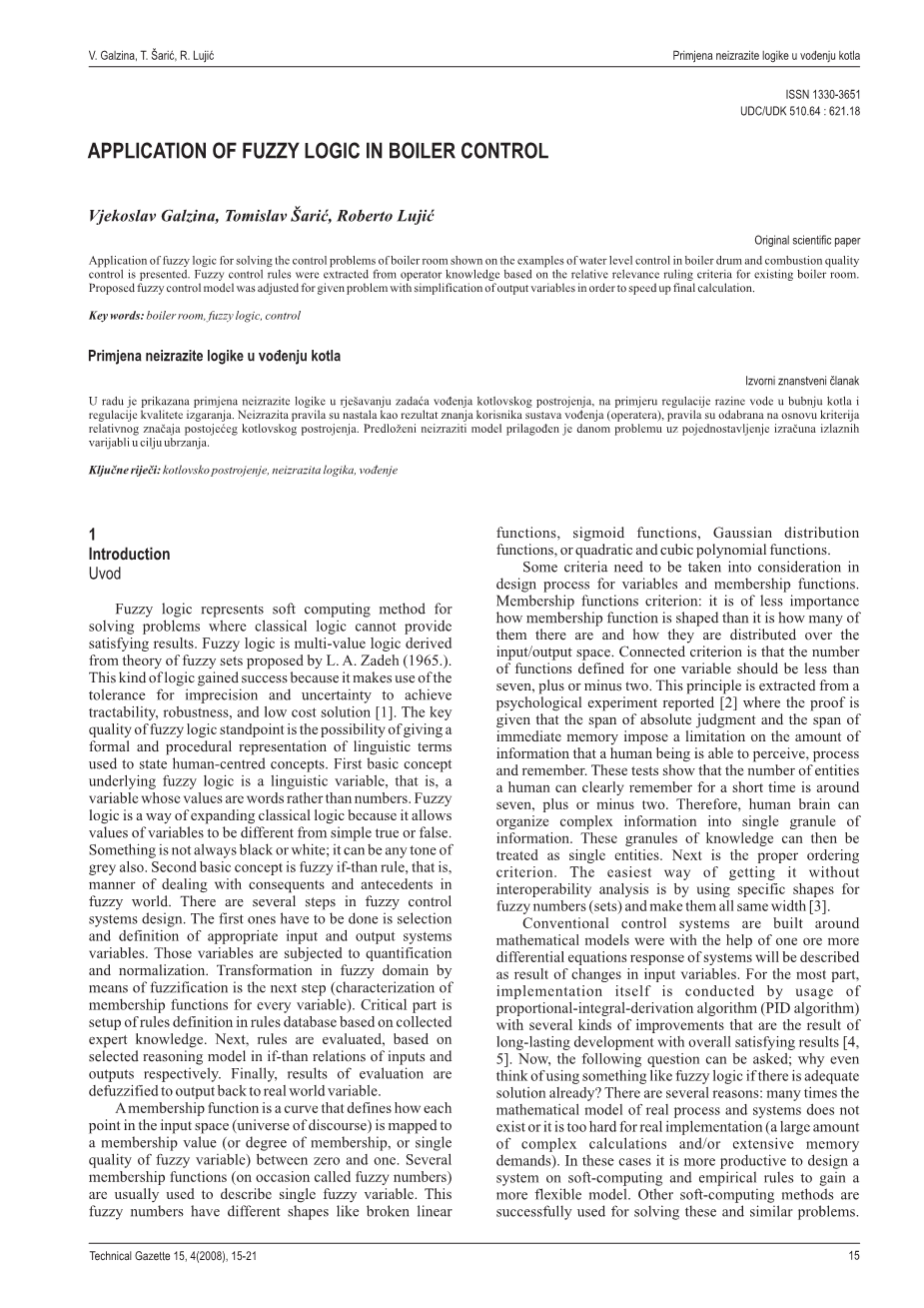 关键词:锅炉房、模糊逻辑、控制。