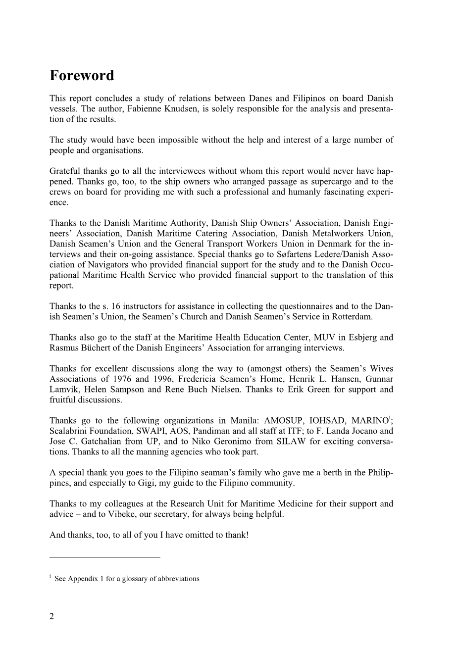不管丹麦人如何积极地看待与菲律宾人的关系,在大多数采访中,都有人抱怨菲律宾人缺乏首创精神,以及他们对权威的过分夸大的尊重。丹麦人和菲律宾人这种相处的模式也许是产生于在相当长时间中菲律宾人曾受到各种殖民主义的威胁:“...这种心态,可追溯到他们殖民地的过去,当时白人总是很优秀。这很简单。而作为一个优越者,拥有权力可以让你疯狂,他说“是先生”,即使他不明白什么他在说。“(船员经理DK)。