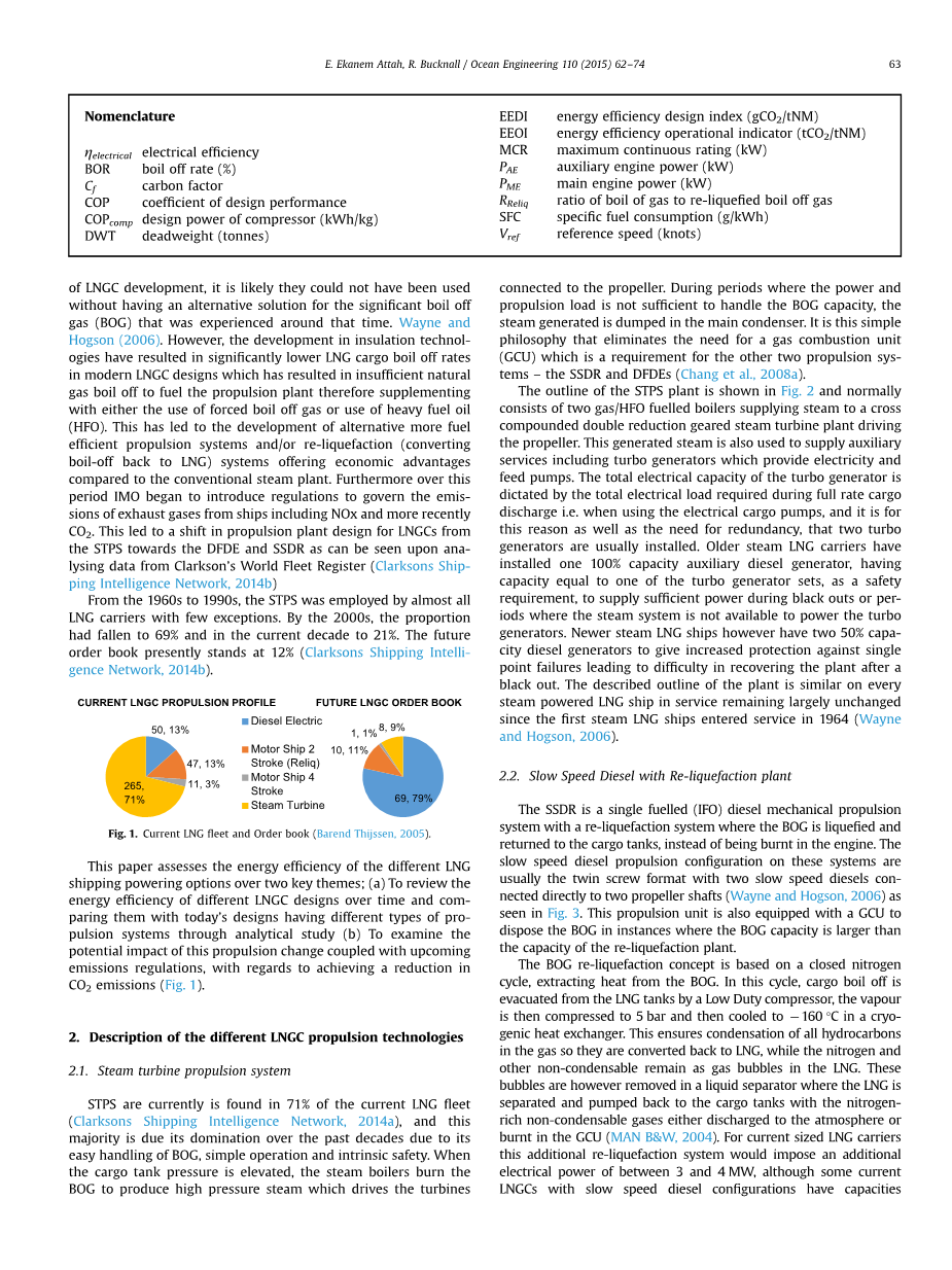 在过去的十多年间,天然气被用作一种新型能源已经在不断地兴起,这主要是因为它的储量丰富,容易获取,更加廉价,同时比现有的化石能源排放性更加优良。为了便于储存和运输,通过制冷到-160℃,天然气被转换成它的液体状态(LNG,液态天然气)。这样一来,它的体积比它的气体状态缩小了600倍,从而能够使用特殊设计的冷冻船舶(LNGCs)通过海路对其进行运输。使用这些液态天然气运输船对天然气进行长距离的运输,输送到没有天然气管道的特制终端,在这里进行LNG的再次气体化并通过管道输送到其他地方,这样的整个过程的成本是可以接受的。在2014年7月,全球有335艘LNGCs投入使用,并且随着这些LNGCs的使用,在三种不同的推进方式中,蒸汽涡轮推进(STPS)优势显露,其余两种推进方式分别是柴油电力推进(DFDE)和配有液化站的传统低速两冲程柴油发动机(SSDR)。