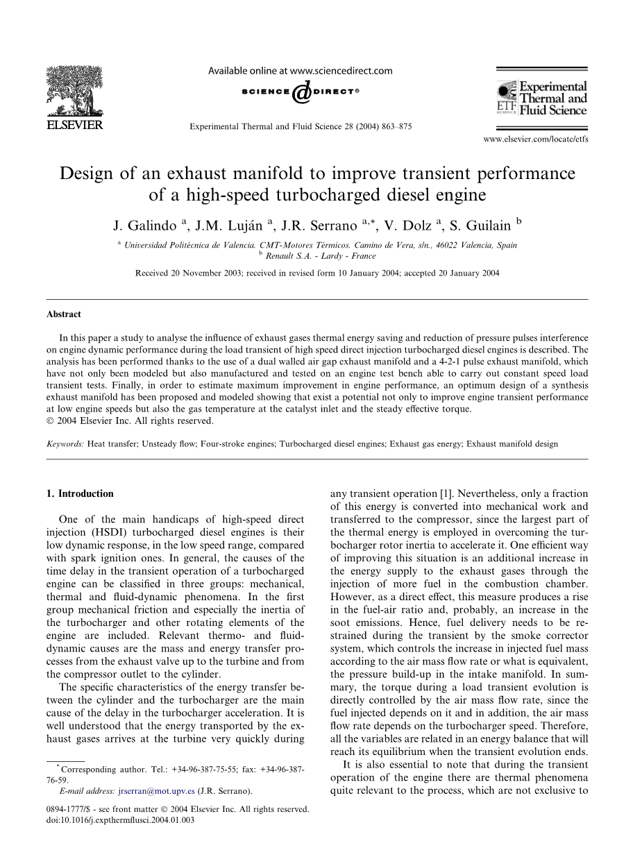 J. Galindo a, J.M. Lujan a, J.R. Serrano a,*, V. Dolz a, S. Guilain b