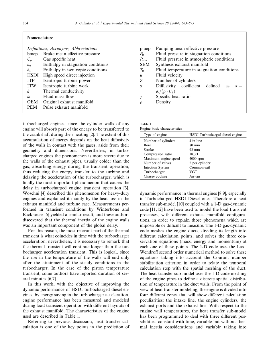 来自涡轮增压发动机的径向涡轮机可以使用的能量取决于从排气阀打开时刻的排气的压力,温度和质量流量的变化值。因此,这种能量不仅取决于发动机工作条件,而且还取决于当废气通过排气管路元件到达涡轮机入口时废气的能量损失。前者基于重型涡轮增压柴油发动机排气管线能量概念的研究将这种损失归因于三个主要来源:粘性气体通过可变截面管道的高速流动,热力学过程的不可逆性和排气系统中通过发动机壁的热交换。这项研究确定了HSDI涡轮增压器柴油机的能量损失的主要来源并探究了其参数值变化。