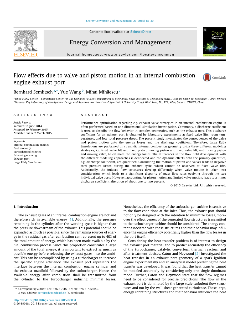 Wang等人[15]在数值上研究了排气道几何形状中总压力损失的来源。对于室温下的小气门升程,排气道总压力损失分为两部分,将排气道的总压力损失分为了几个部分,并通过与经验公式的比较来确定损失的主要原因。Bohac和Landfahrer[9]研究了在恒定和脉动流入边界条件下用五个不同排气道几何形状获得的流量系数的交替性。实验装置是在室温下固定气门升程的流量试验台测量,其中观察到流量系数增加6%和下降7%的变化。当不同的气门升程平均时,测量流量系数的增加为0.5-2.5%。因此,Bohac和Landfahrer得出结论,这个百分比与总发动机性能相比非常小,而稳态流量试验台测量是为优化发动机而获得流量系数的一种有效假设。Semlitsch等人[16]研究了有无流动脉动的排气道中的流动动态。他们观察到的流量系数趋势与Bohac和Landfahrer所研究的是相同的。Semlitsch等人[16]发现,在类似发动机的条件下,流动状况的演变显著不同。然而,本文所列的研究考虑了室温和固定气门升程,以模拟流动试验台实验。因此,没有考虑到真正内燃机中发生的气门动力学和高温排气温度的影响。