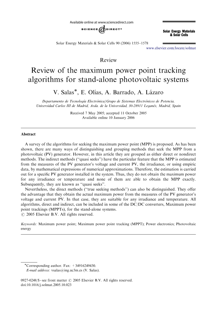 然而,直接法(真寻求法)也可以被区分。它们的优势在于从光伏电机的电压和电流的测量值中获得实际的最大功率。基于这种情况,他们适合于任何辐射和温度。所有的最大功率追踪算法中,不论直接的或间接的,都可以包括在一些DC/DC转换器中,成为独立的系统。