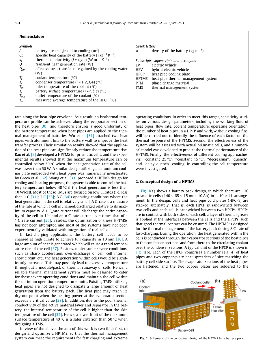 关键词:锂离子电池,热管理,热管,电动汽车