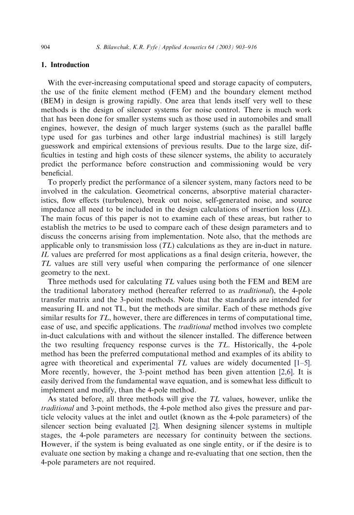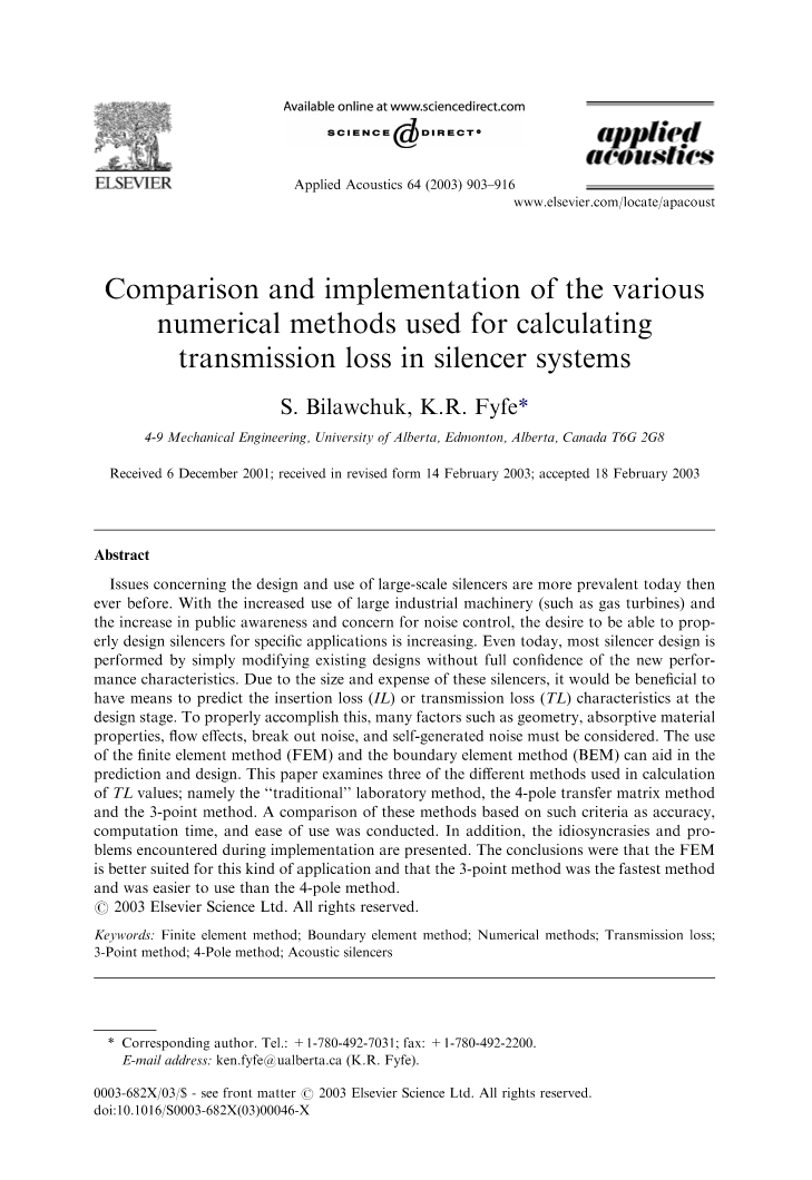 当今关于大型消声器的设计和使用问题尤为普遍,随着大型工业机械(如燃气轮机)越来越多的使用和人们关注噪声控制的意识增强,人们越来越渴望能够设计出特定应用的消声器。即使在今天,大多数的消声器设计是通过简单的修改现有的设计而没有新的性能特点,由于消声器的尺寸和费用,在设计阶段预知插入损失(IL)或传递损失(TL)的特性将是有益处的。为了正确地做到这一点,需要考虑许多因素如几何形状、吸音材料的新能、流动的影响、爆发噪声及自产生噪声等,有限元法(FEM)和边界元法(BEM)在预测和设计中的应用。本文探讨了三种不同的TL值的计算方法,即“传统”的实验室方法、4极传递矩阵法和三点法,这三种方法的比较是在精度、计算时间和易用性等标准的基础上进行的。此外,提出了在实施过程中所遇到的特性和问题。得到的结论是:有限元法更适合于这种应用,三点法是最快的方法且比四极法更容易使用。