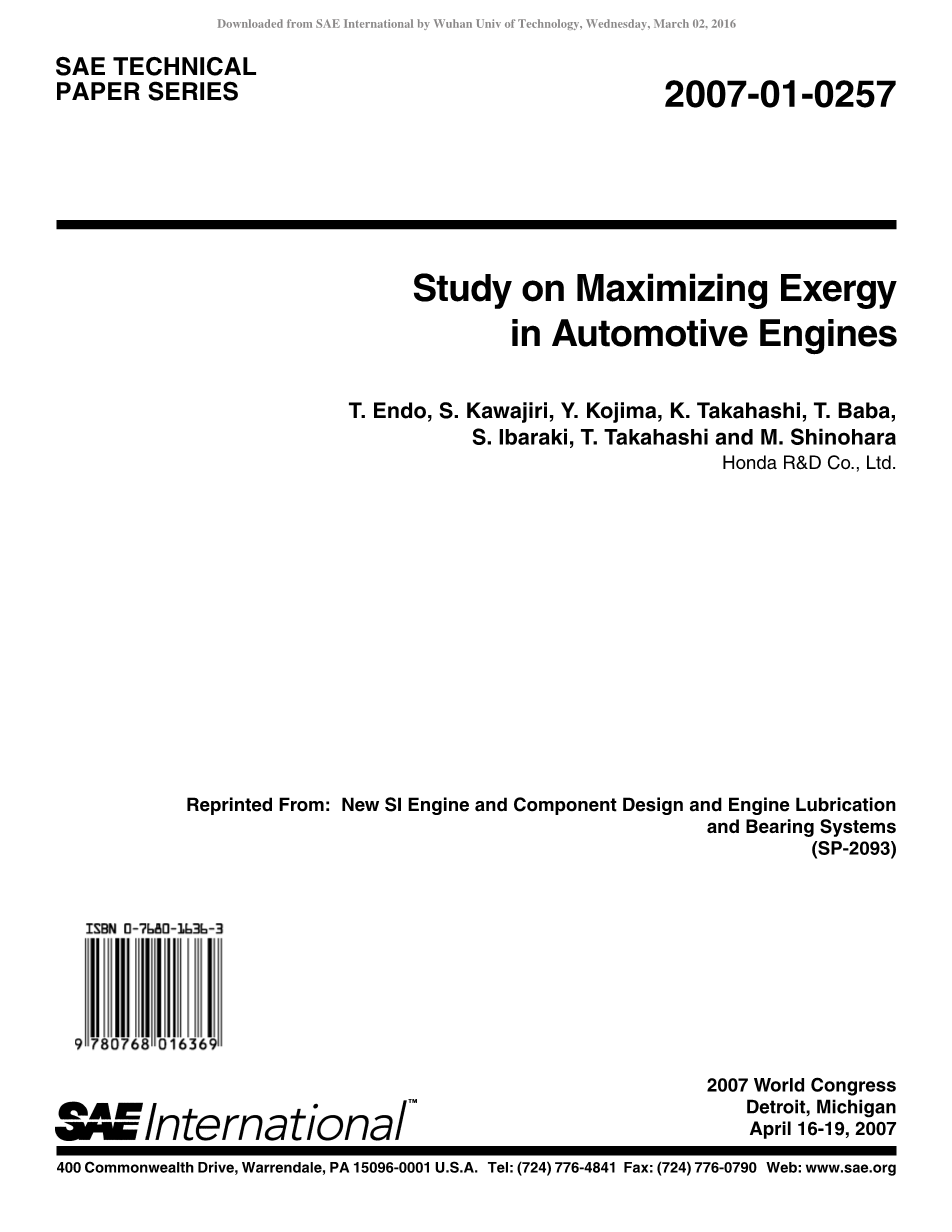 图8显示了测量数据的气缸盖冷却水流量和出口水温度。气缸壁的温度随水流速降低。面对火花塞的条件下保持座位约140度作为一个标准温度,可以降低水流率0.5 L / min(标准引擎需要3 L / min。至少)和获得高温加热的水189度在1.22 MPa。表面温度的燃烧室被证实是制服,低于标准的发动机,而表示燃油消耗率(ISFC)和废气特点等于这些测量标准引擎。这证实了冷却系统的变化对燃烧没有造成不利影响。