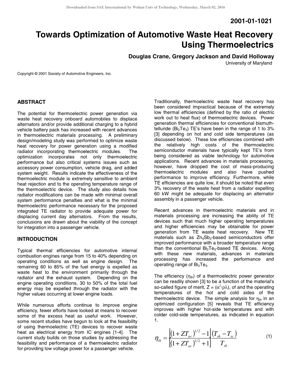 Copyright copy; 2001 Society of Automotive Engineers, Inc