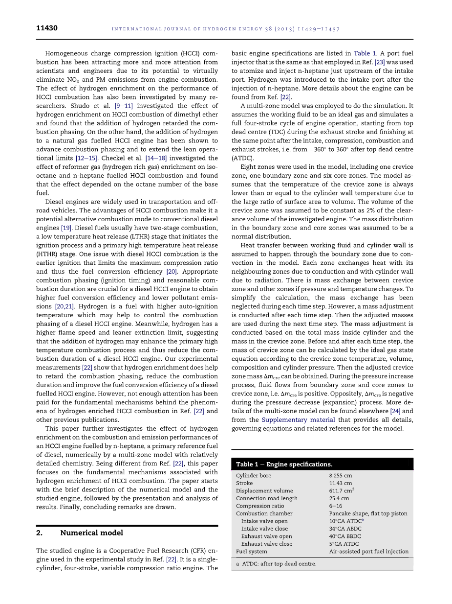 本篇文章通过运用分区模型和大量的化学知识更加深入的研究了掺氢气对正庚烷(柴油的主要成分)HCCI发动机燃烧和排放的影响。为了区别于参考文献,本篇文章着重研究掺氢气对HCCI发动机燃烧过程影响的基本机理。本篇文章以描述数值模型和研究过的发动的为开始,陈述和分析了结果,最后得出结论。