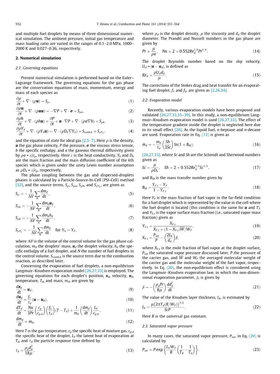 这里是液滴密度,是粘度是液滴直径。气相阶段普朗特和努塞尔特数字由下列方程给出: