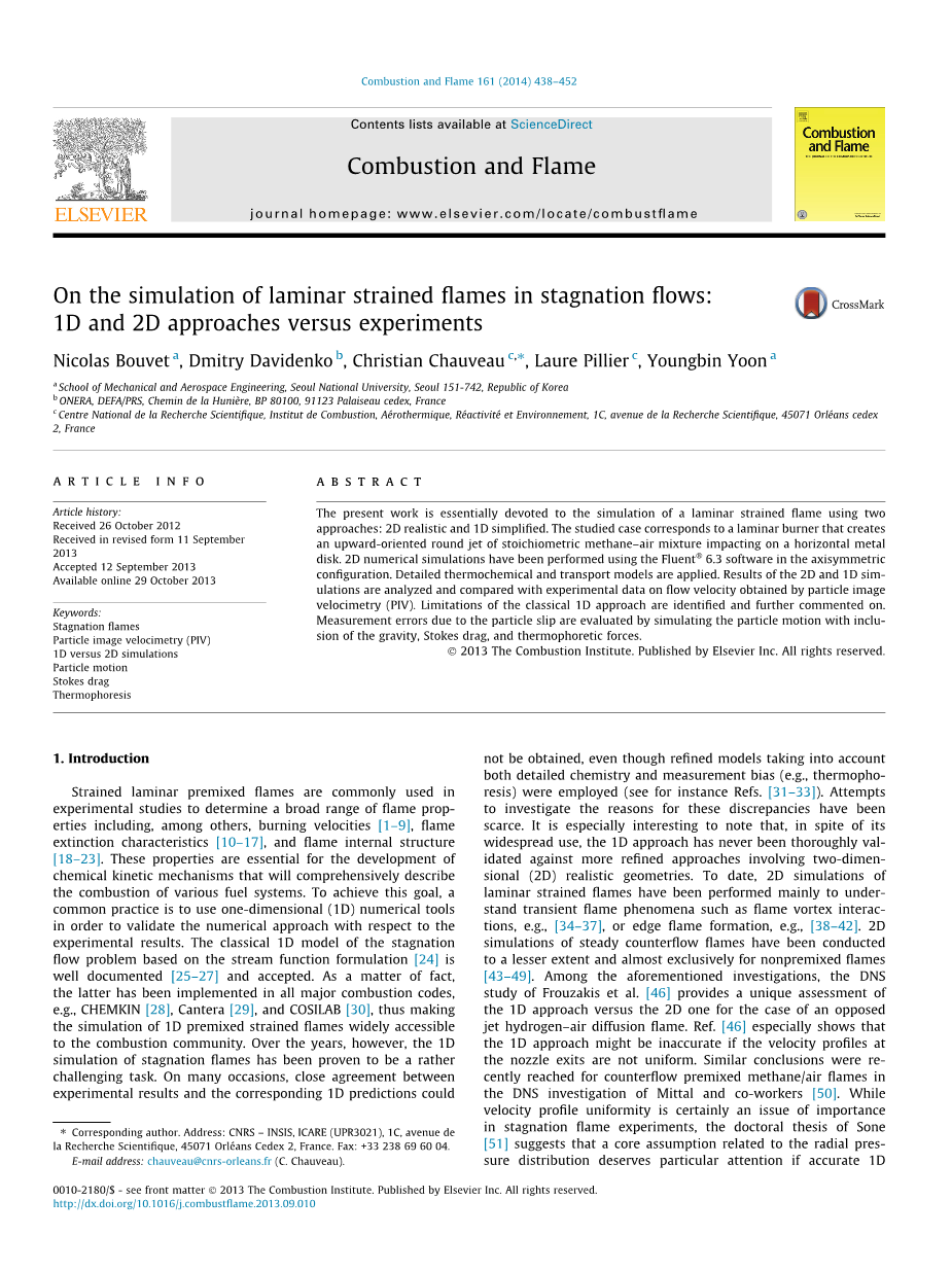 题目:层流应变火焰在停滞流动中的模拟:一维和二维方法与实验