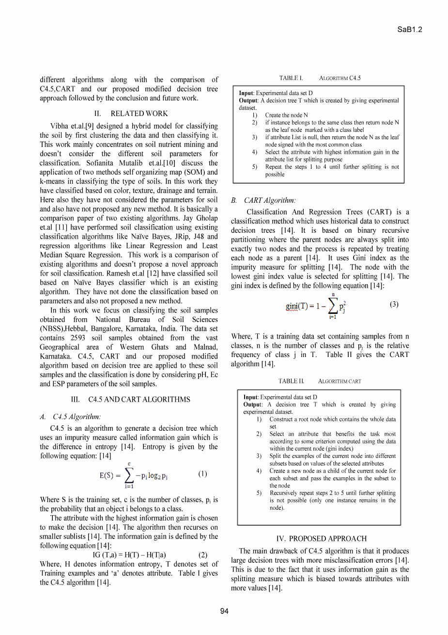 在这项工作中,我们重点对来自印度卡纳塔克邦班加罗尔的国家土壤科学局(NBSS)的土壤样本进行分类。该数据集包含了2593个土壤样本,这些样本来自卡纳塔克邦西部的西加特和马尔纳德广阔的地理区域。将C4.5、CART和我们提出的基于决策树的改进算法应用于这些土样,并考虑了土样的pH、Ec和ESP参数,进行了分类。