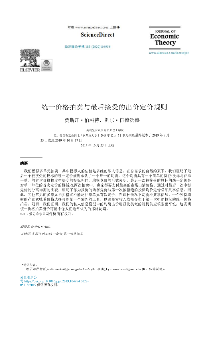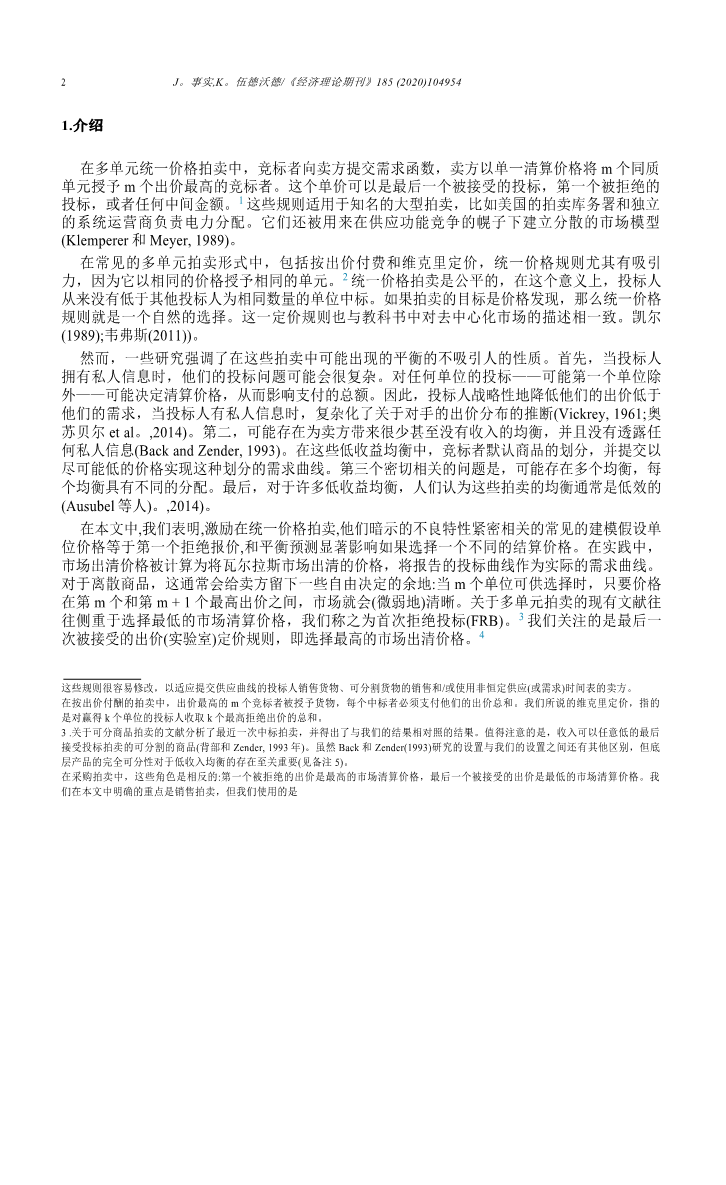 统一价格拍卖与最后接受的出价定价规则外文翻译资料 2023-01-18 10:29:51 英语原文共 49 页,剩余内容已隐藏,支付完成后下载完整资料 英语译文共 49 页,剩余内容已隐藏,支付完成后下载完整资料 资料编号:[255090],资料为PDF文档或Word文档,PDF文档可免费转换为Word 您需要先支付 30元 才能查看全部内容!立即支付 发小红书推广免费获取该资料资格。点击链接进入获取推广文案即可: Ai一键组稿 | 降AI率 | 降重复率 | 论文一键排版 PREVIOUS NEXT 您可能感兴趣的文章 非线性薛定谔方程的几种差分格式比较文献综述 基于多目标优化社团发现的比较研究文献综述 基于不同数据源的干旱监测比较研究开题报告 基于MATLAB/GUI的非线性方程求解开题报告 一类Hermitian矩阵行列式函数的极值问题文献综述 非线性Schr#246;dinger方程的一个显式Sine拟谱方法文献综述 学生兼职信息管理系统开发文献综述 基于图像的物体高度测量方法及实现开题报告 SNPP/VIIRS海洋叶绿素浓度产品的真实性检验文献综述 基于Landsat影像的南通双如地区土地利用变化监测与分析文献综述