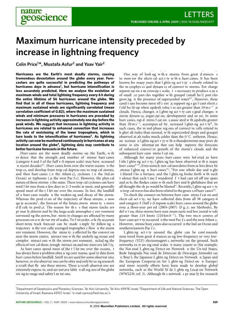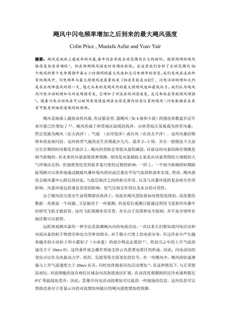 飓风中闪电频率增加之后到来的最大飓风强度外文翻译资料