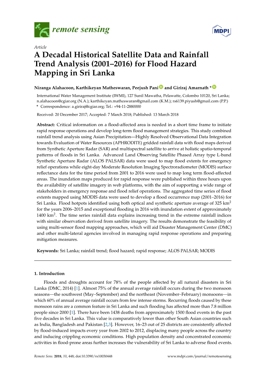 斯里兰卡洪水灾害地图的十年历史卫星数据和降雨趋势分析(2001- 2016)外文翻译资料