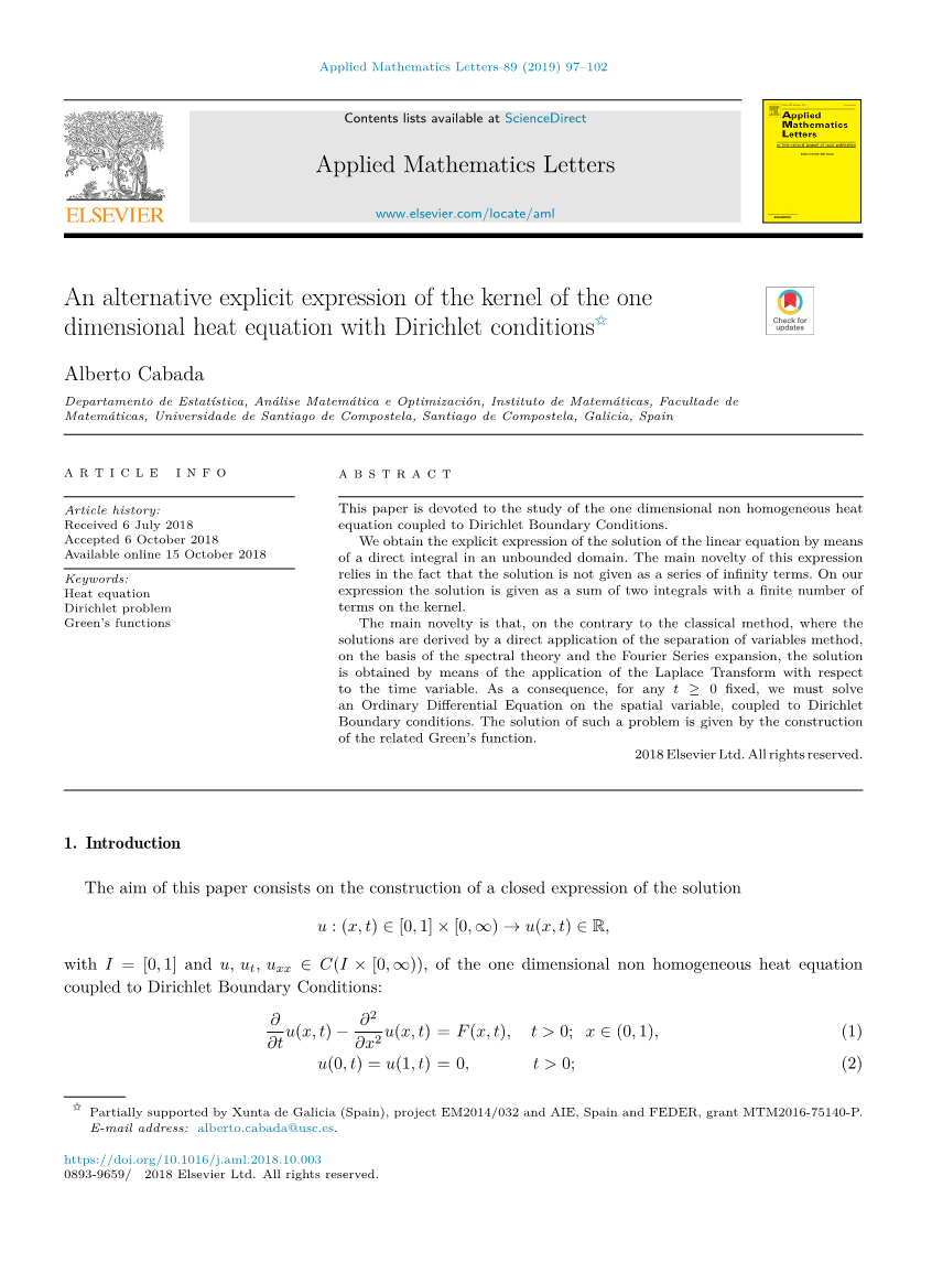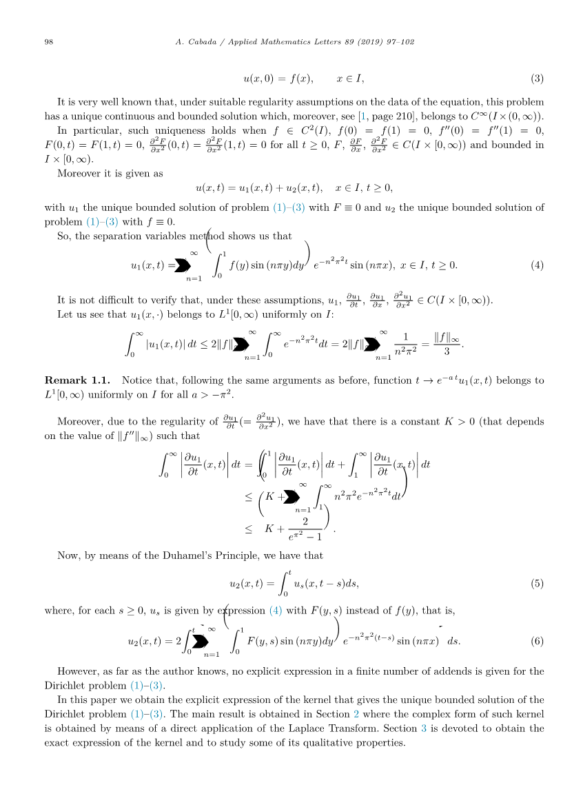 摘要 本文研究了一维非齐次热力方程与Dirichlet边界条件的耦合问题.通过利用无界域上的直接积分,我们得到了线性方程解的显式表达式.这个表达式的主要创新之处在于它的解不是作为一系列无穷项给出的.在我们的表达式中,解的形式是两个积分的和,在核上有一个有限的数位.在经典方法中,热力方程的解是由基于谱理论和Fourier级数展开的变量分离法直接应用而得到的.而与经典方法相反,我们的解是通过Laplace变换对时间变量的应用而得到.因此,对于任意tge;0的定常微分方程,我们必须解空间变量上的一个常微分方程,并与Dirichlet边界条件耦合,通过相应 Green函数的构造给出了该问题的解.