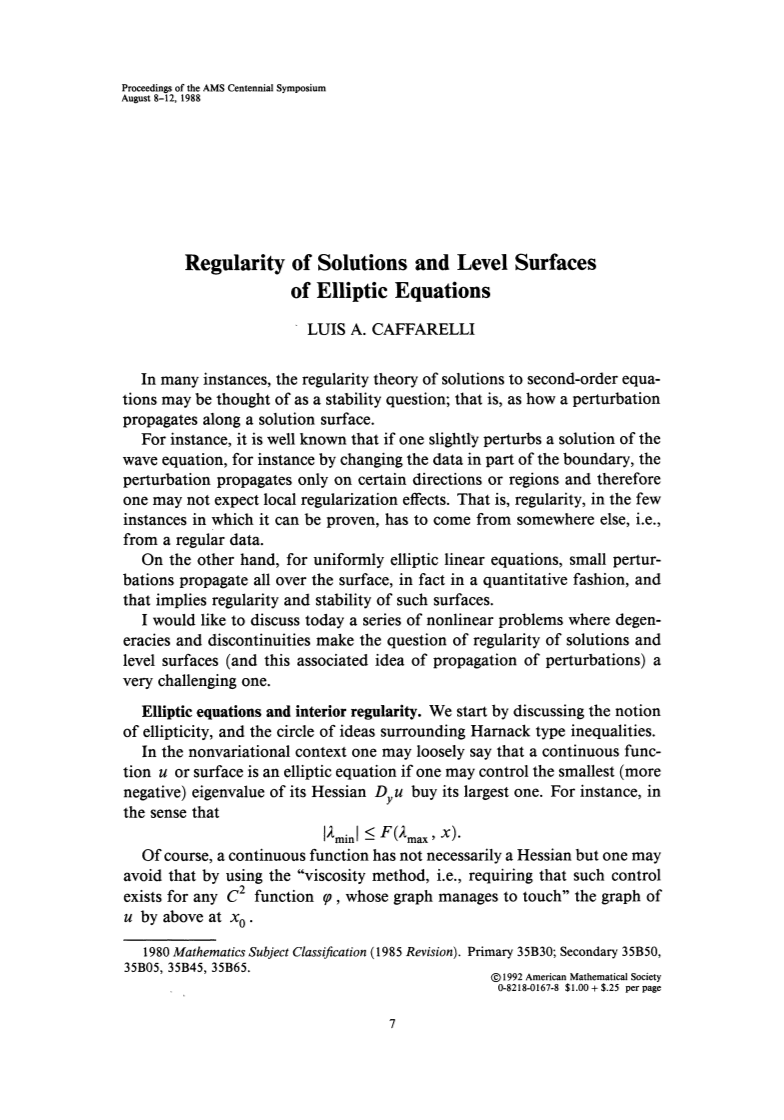 在许多例子中,二阶方程解的正则性理论可以被认为是一个稳定性问题;也就是说,可以看成一个扰动如何沿着积分曲面传播的问题.