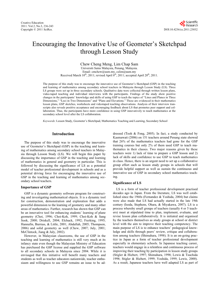 Encouraging the Innovative Use of Geometerrsquo;s Sketchpad through Lesson Study
