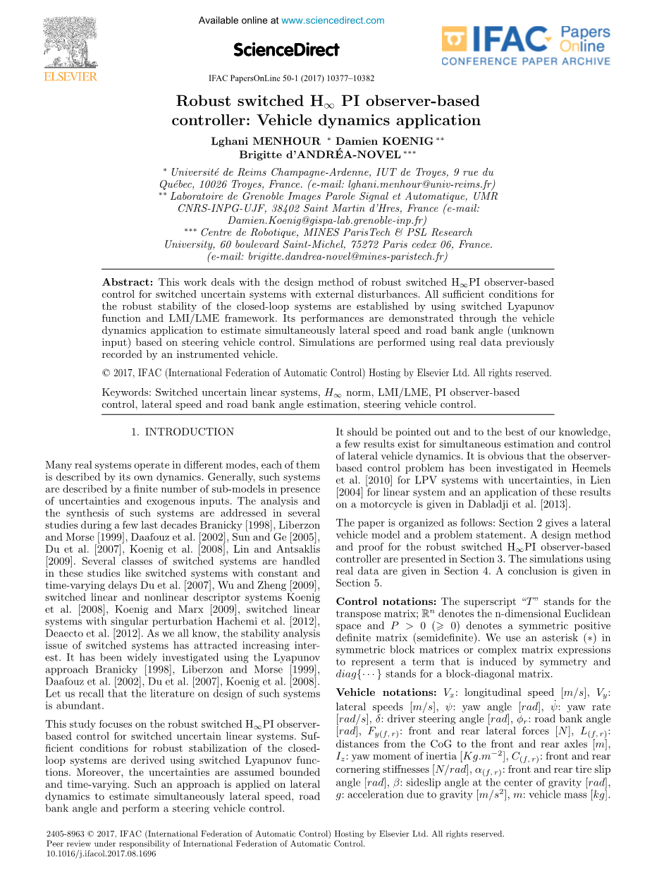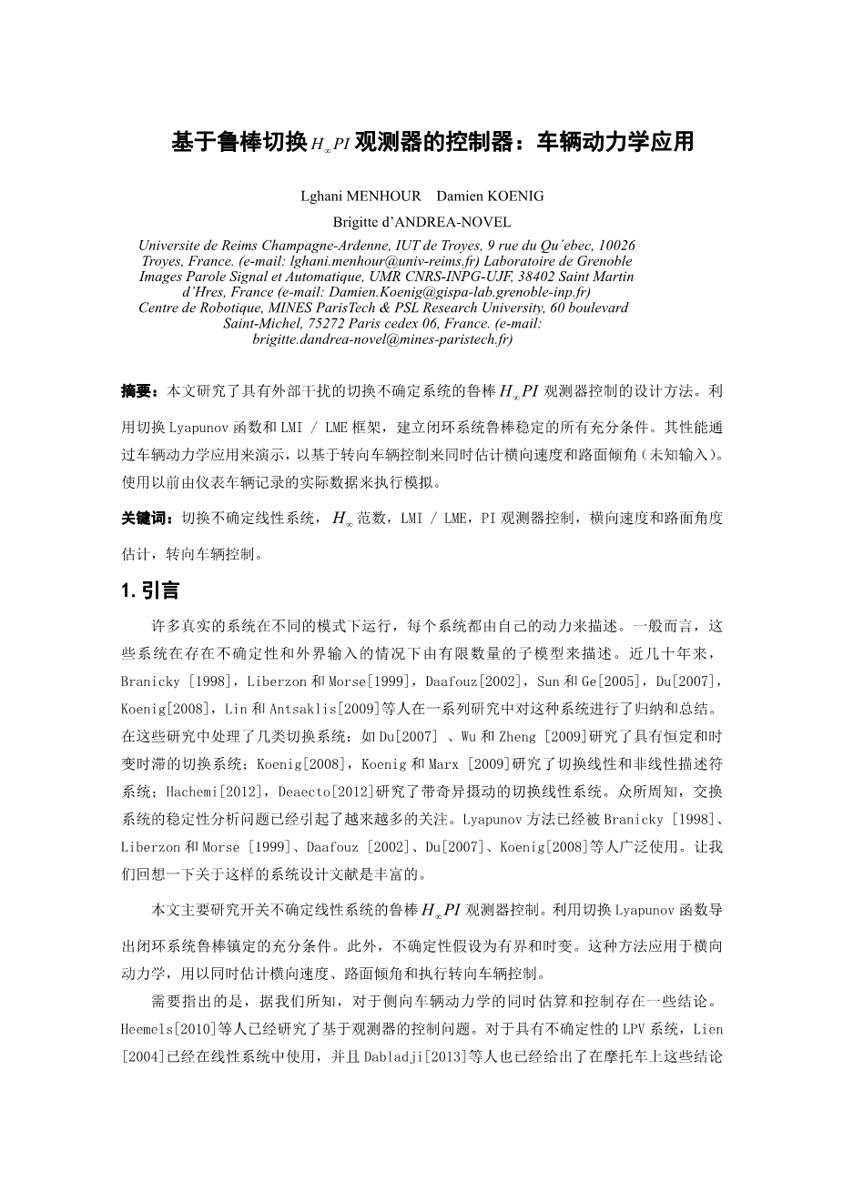 基于鲁棒切换HPI观测器的控制器:车辆动力学应用外文翻译资料 2023-02-22 19:27:18 英语原文共 6 页,剩余内容已隐藏,支付完成后下载完整资料 英语译文共 12 页,剩余内容已隐藏,支付完成后下载完整资料 资料编号:[23577],资料为PDF文档或Word文档,PDF文档可免费转换为Word 您需要先支付 30元 才能查看全部内容!立即支付 免费ai写开题、写任务书: 免费Ai开题 | 免费Ai任务书 | 免费降AI率 | 免费降重复率 | 论文免费排版 PREVIOUS NEXT 您可能感兴趣的文章 微积分中值定理中间点的渐近性文献综述 p-群的性质开题报告 基于随机矩阵理论的无人机地面控制站GNSS干扰检测外文翻译资料 比特币和加密货币技术外文翻译资料 超参数优化的随机搜索外文翻译资料 中国居民收入与消费关系的时空差异:基于函数数据的动态分析外文翻译资料 自然图像抠图的封闭形式解决方案外文翻译资料 AlphaGAN:用于自然图像抠图的生成对抗网络外文翻译资料 用于语义分割的全卷积网络外文翻译资料 卷积神经网络我们了解多少外文翻译资料
