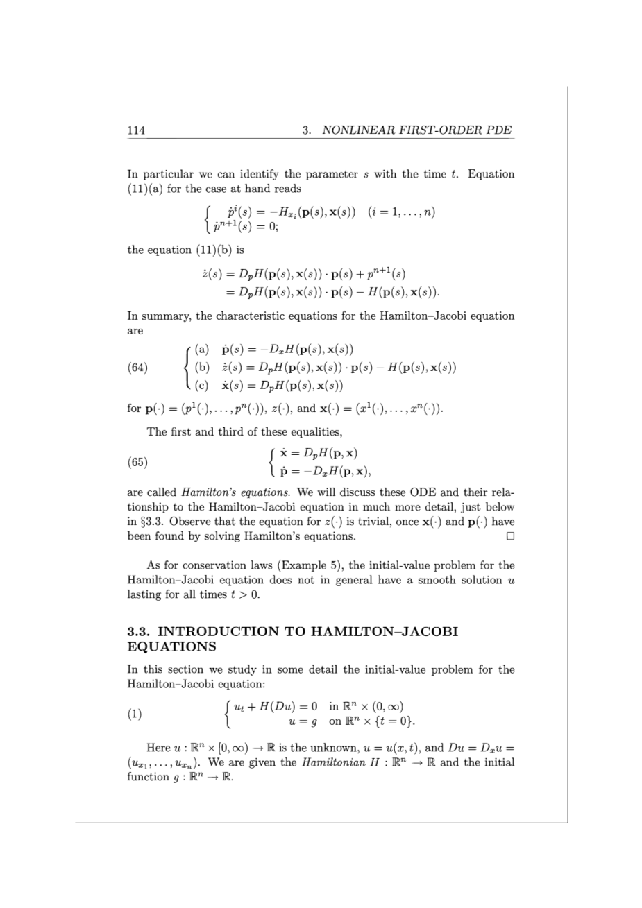 关于经典力学中的汉密尔顿常微分方程和汉密尔顿-雅各比偏微分方程的更多内容,见Arnold [Ar1, Chapter 9]。我们在这里采用了与力学中的习惯不同的符号:我们的符号大体上更适用于偏微分方程理论。