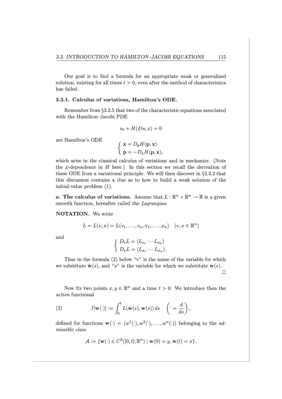 它在古典变分学和力学中出现过。(注意这里H对x有依赖性)在这一节中,我们回顾了这些常微分方程从变分原理中的推导。我们将在3.3.2中,讨论如何建立初值问题(1)的弱解。