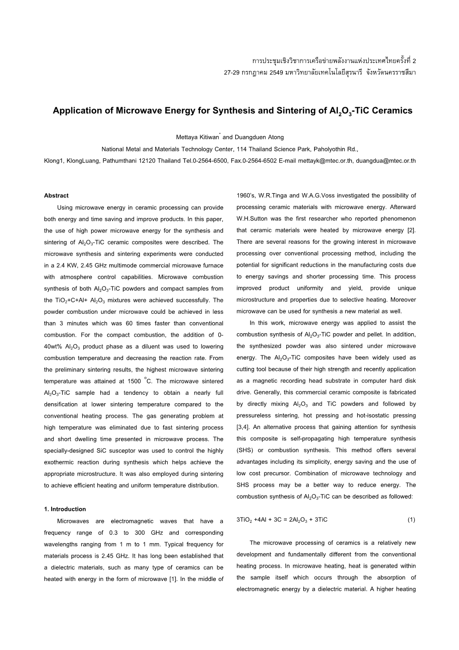 微波在Al2O3-TiC陶瓷合成及烧结中的应用