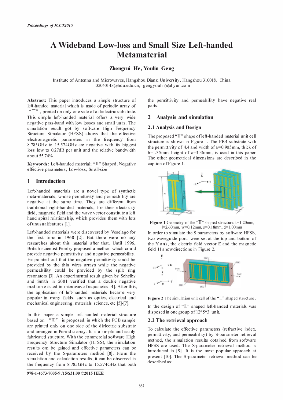 关键词:左手材料,“Ⅱ”形,负等效参数,低损耗,小尺寸