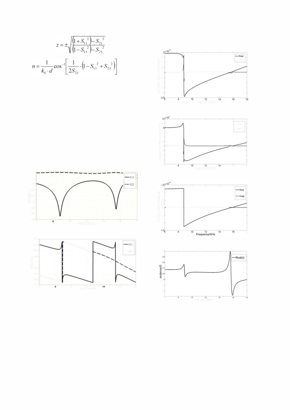 利用S参数反演法和一段MATLAB代码分析转移矩阵和反射矩阵,以获得等效材料参数(ε,mu;,n,z),如图4所示。