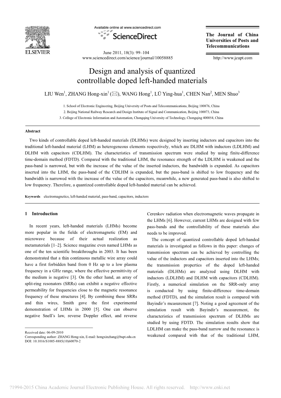 LIU Wen, ZHANG Hong-xin,WANG Hong, LUuml; Ying-hua,北京邮电大学,电子工程学院。