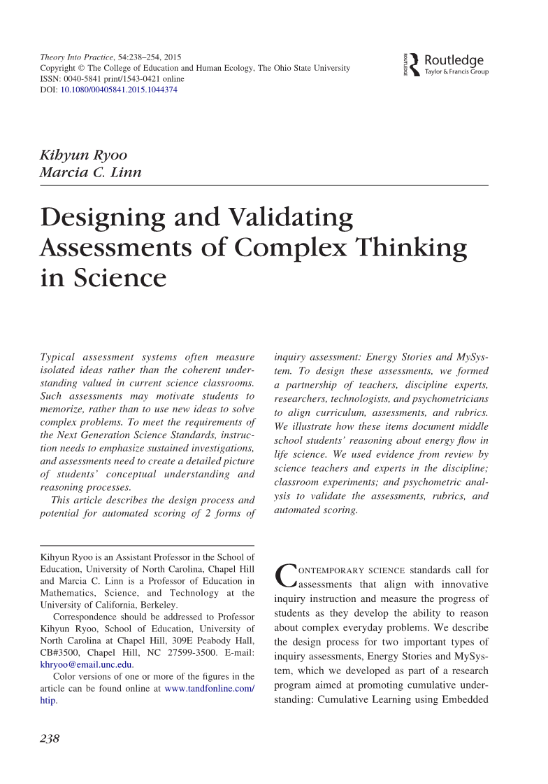 附:外文原文:Designing and Validating Assessments of Complex Thinking in Science